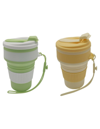 - Tazas Plegables de Silicona Hechas de material de silicona de grado alimenticio, estas tazas colapsables tienen una capacidad de 350ml, son duraderas, no ocupan mucho espacio y son muy convenientes.