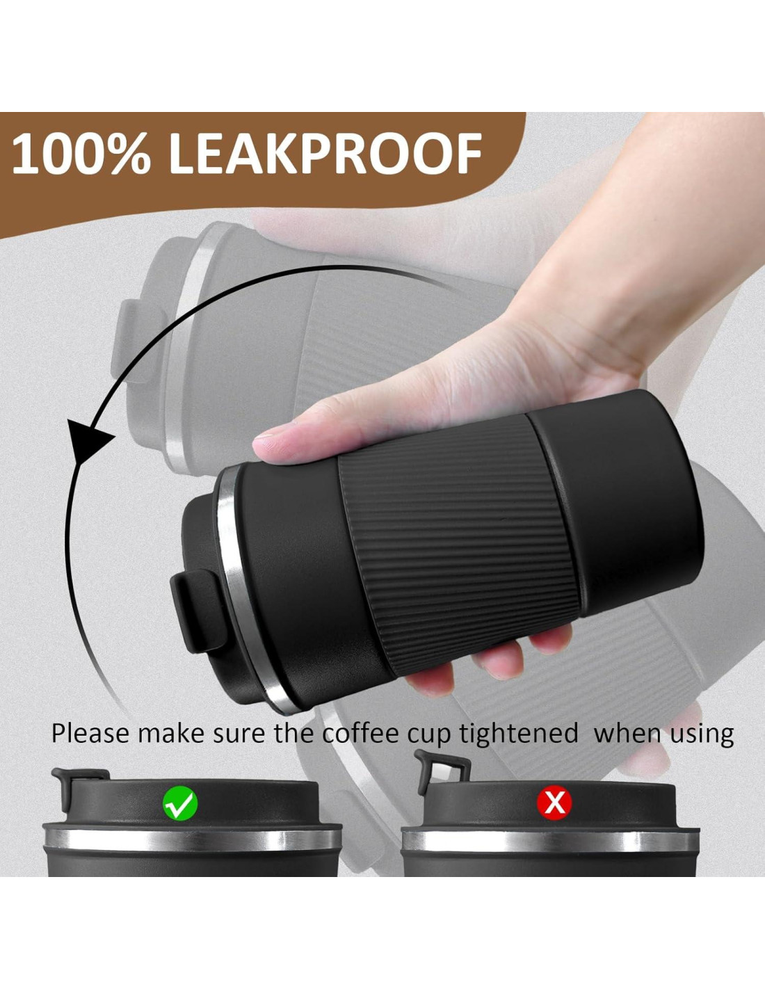 - DISEÑO A PRUEBA DE FUGAS Y ANTIDESLIZANTE: La tapa de la taza de café de viaje viene con un sello de silicona hermético que evita que las bebidas se derramen. La ventilación en la tapa permite que las bebidas fluyan suavemente sin salpicaduras ni desbordamientos. La textura de silicona en la superficie de la taza de café térmica proporciona un agarre antideslizante, mientras que la base antideslizante evita que la taza de café se deslice o se vuelque