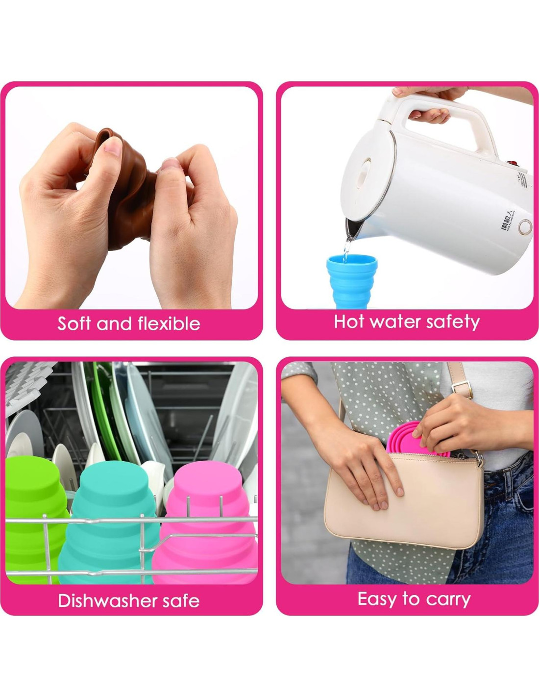 - Amplia Aplicación: nuestra colorida taza colapsable es portátil y compacta, adecuada para deportes al aire libre, camping, viajes, trenes, oficinas, escalada, senderismo y más, ideal para contener varias bebidas, leche, café, jugo, agua, bocadillos y más, sin agregar demasiado peso para ti