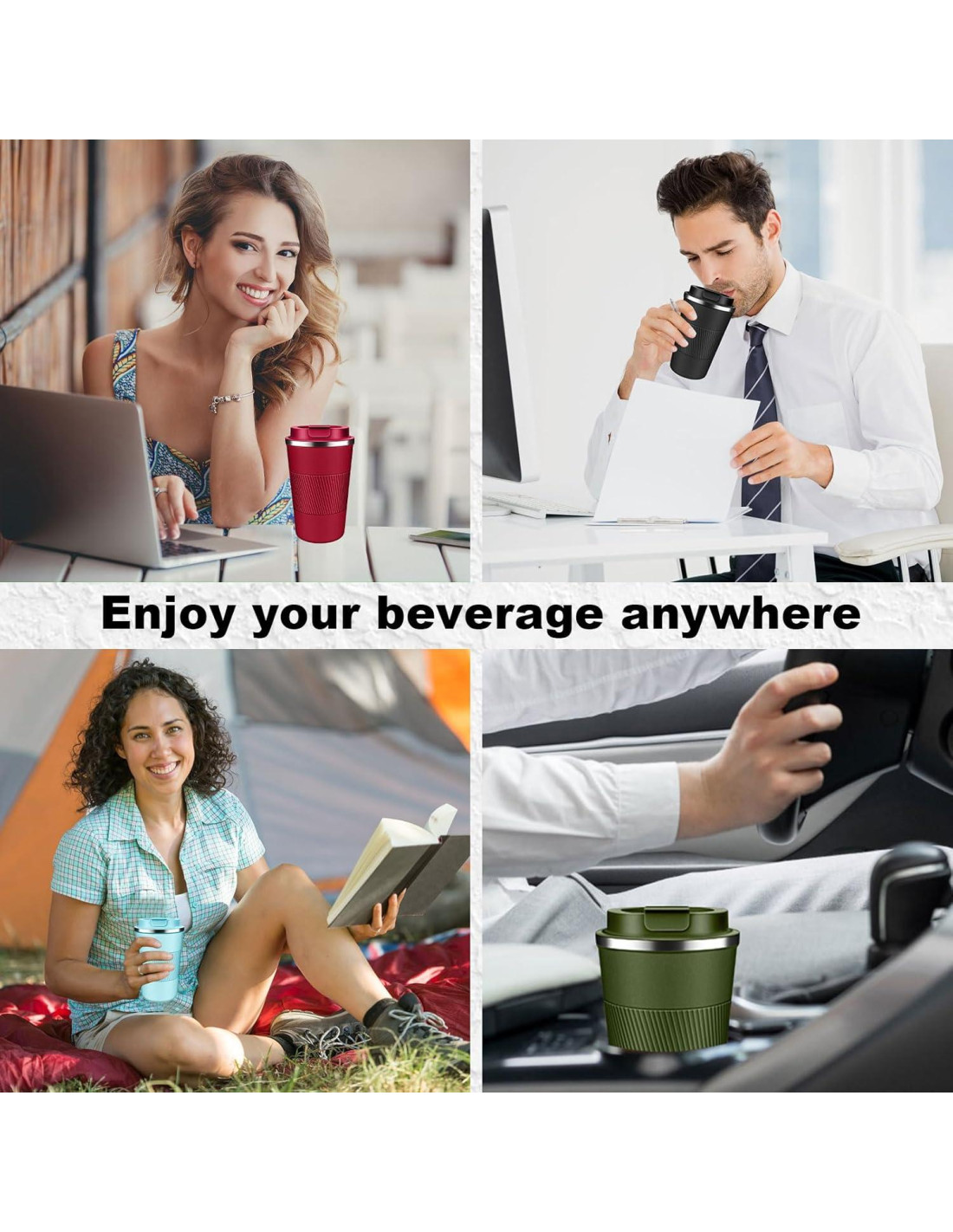 - -Tamaño perfecto y rendimiento a prueba de fugas: Ofrecemos dos tamaños de tazas de café, 12 onzas (380 ml) y 17 onzas (510 ml), y puedes elegir libremente según tu propia situación. Se adaptan a la mayoría de los portavasos, incluso los portavasos en el automóvil. La taza de café está equipada con un anillo de sellado y una almohadilla antideslizante para prevenir fugas y deslizamientos. La parte superior de la tapa de la taza tiene una salida de bebida para facilitar la bebida