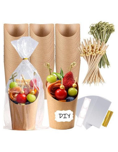-Dale a los invitados su propia tabla de charcutería individual en una taza. Estos tazones para papas fritas son una herramienta ideal para cualquier fiesta temática. En la mayoría de las condiciones, puede atraer fácilmente la atención de los invitados. El material kraft premium evitará que la charcutería aceitosa penetre en la taza. El kit de tazas de aperitivos ofrecerá a los invitados un soporte encantador lleno de sus deliciosos aperitivos. ¡Listo para disfrutar de la comida!