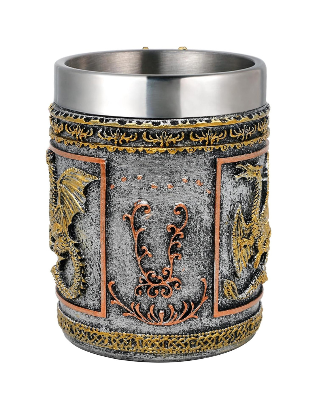 - MEJORA DE ARTESANÍA PREMIUM - El exterior de esta taza de dragón rugiente medieval está hecho de resina de alta calidad. El interior está hecho de acero inoxidable 304 y está fijado, soportando hasta 15.8 oz (0.45 litros). La boca de la taza es gruesa y suave, con una altura aumentada de 0.6 pulgadas (1.52 cm). Al beber, tus labios no tocarán el cuerpo de la taza, haciéndolo más cómodo y seguro. Funciona bien para beber cerveza, vino, café, leche o tés.