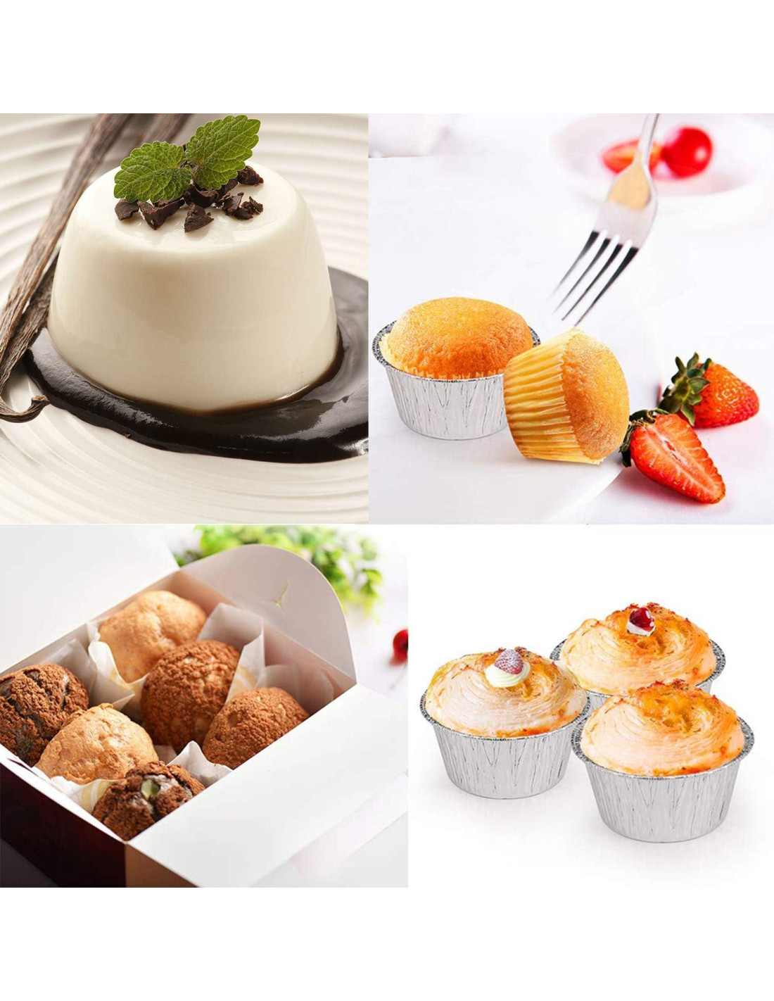 - MULTIUSO: Tazas de hornear de papel de aluminio desechables adecuadas para hornear pasteles, tartas, flanes, cocinar, asar y más, seguras para usar en el congelador y el horno.