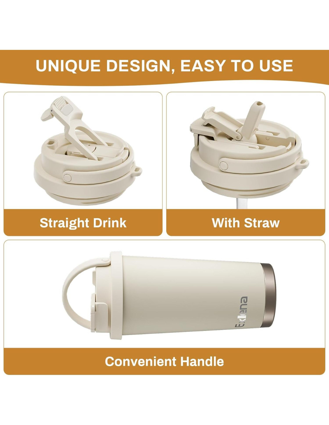 La tapa multifuncional 3 en 1 te permite beber directamente, usar una pajilla o llevarla fácilmente con el asa incorporada, adaptándose a todas tus preferencias de bebida. Fabricada con acero inoxidable 304, consciente de la salud, la taza es duradera y segura para el uso diario. Diseñada con un mecanismo a prueba de fugas, esta taza de café asegura que no haya derrames ni fugas, manteniendo tus manos y pertenencias secas. Se adapta perfectamente a tu rutina diaria con su capacidad óptima. Retiene el calor hasta por 6 horas y mantiene las bebidas frías refrescantes.