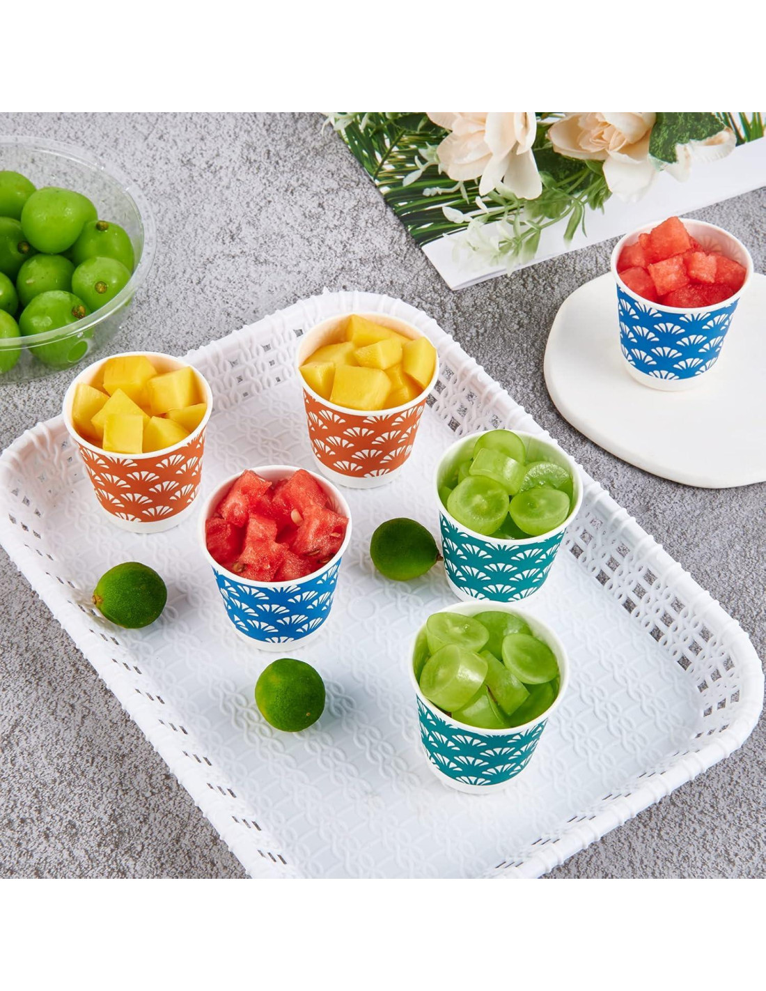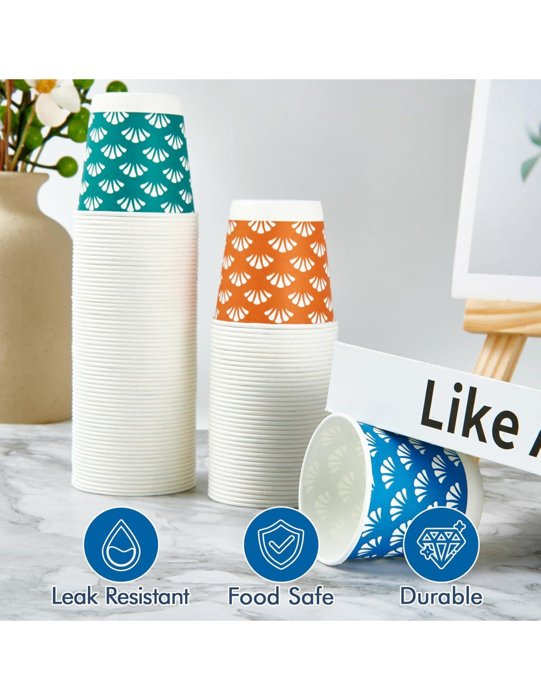 - Fácil de Usar: Son apilables para facilitar el transporte y almacenamiento. Desechar después de usar, no es necesario limpiar. Si las coloridas tazas de papel se pegan, puedes girar las tazas apiladas a mano para resolver el problema