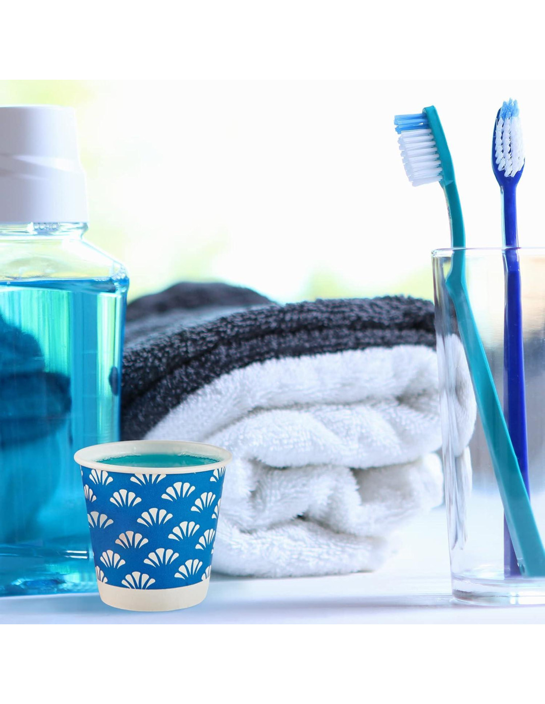 - Material Seguro: Estas pequeñas tazas de baño están hechas de papel de grado alimenticio, una gran alternativa al plástico tradicional. Ya sea comida o enjuague bucal, nuestras pequeñas tazas de papel son perfectamente adecuadas para transportarlas