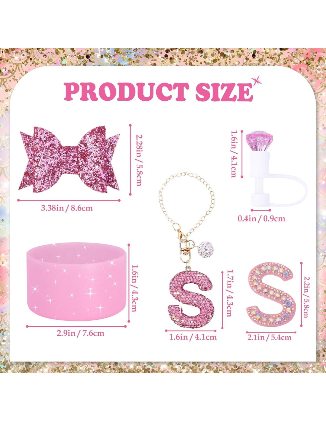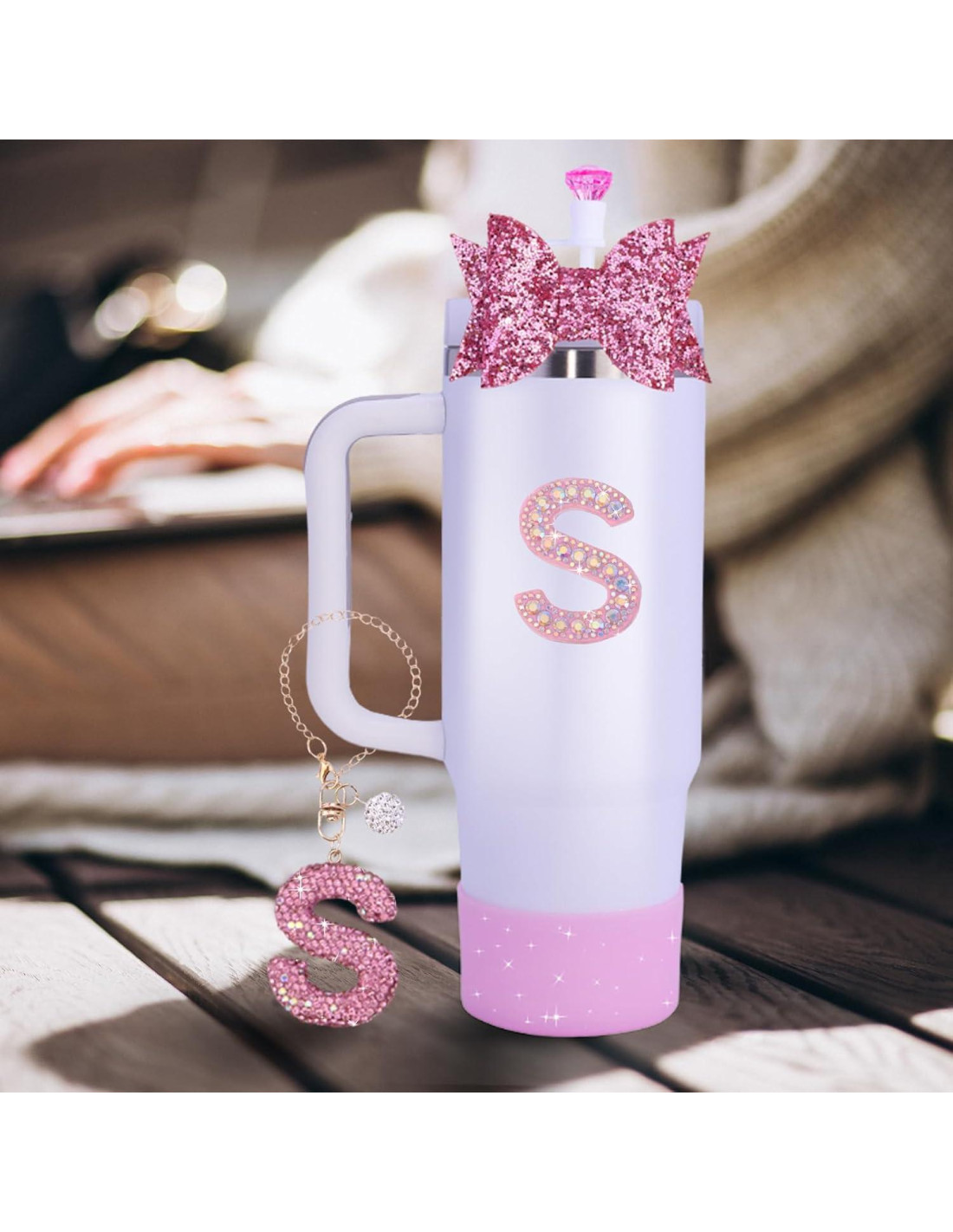 - [Distintivo] El tope de popote de diamante rosa para accesorios de tumbler stanley, el encanto de letra de diamante, la etiqueta de diamante y el botín rosa muestran tu energía. El producto no incluye tazas