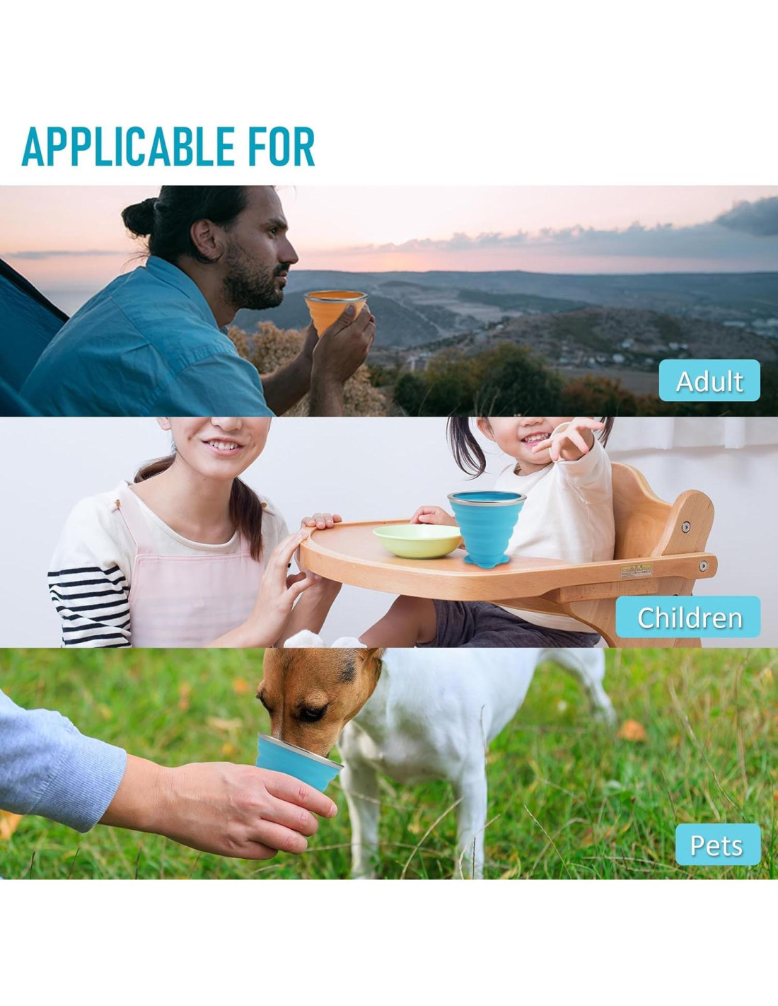 - ALTA CALIDAD - Las tazas de viaje plegables están hechas de silicona de grado alimenticio, garantizado con borde de acero inoxidable y tapa de plástico, libre de BPA. Fácil de limpiar, no tóxico, inodoro, no mancha, duradero, flexible y reutilizable
