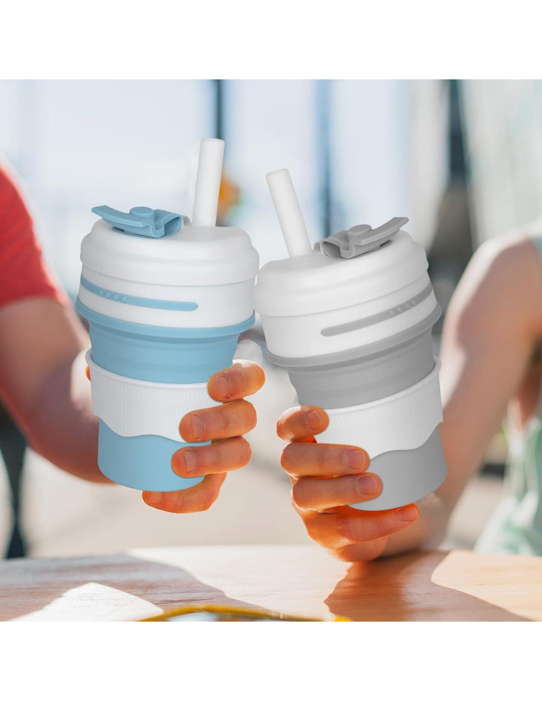 - [Material Seguro] Las tazas plegables para viajar están hechas de silicona de grado alimenticio, y la tapa de la taza está hecha de material PP de grado alimenticio. Es inodora, a prueba de fugas y cómoda de sostener.