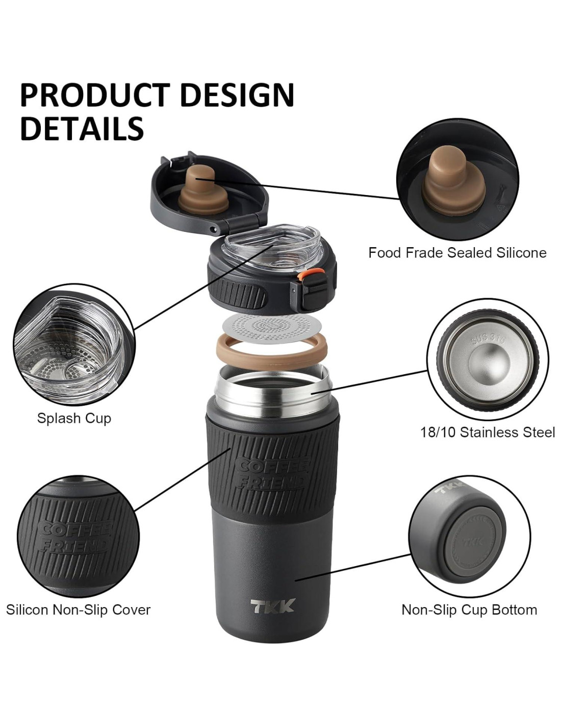 - MÚLTIPLES COLORES PARA ELEGIR: Las tazas de café aisladas TKK son coloridas, puedes elegir los colores populares que te gusten. Con un exterior recubierto de polvo sin sudor, nuestra taza de café de viaje no solo te permite sostenerla cómodamente, sino que también te permite tener una taza texturizada y vibrante durante mucho tiempo.