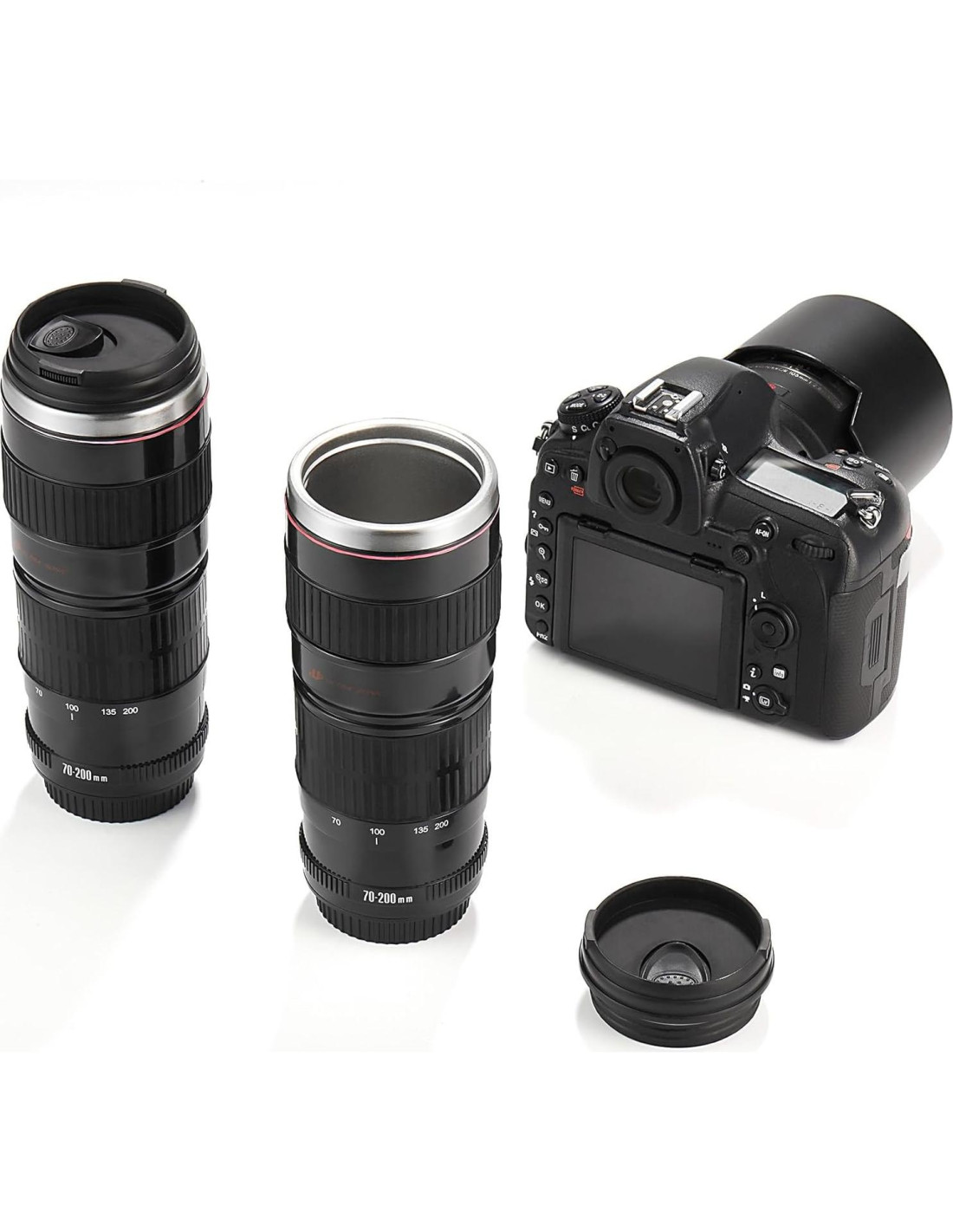 "La taza de lente es una réplica 1:1 del lente EF 70-200mm f/2.8L USM. Se parece a un lente real, es adorable. ¡Regalo perfecto para un entusiasta de la fotografía!"