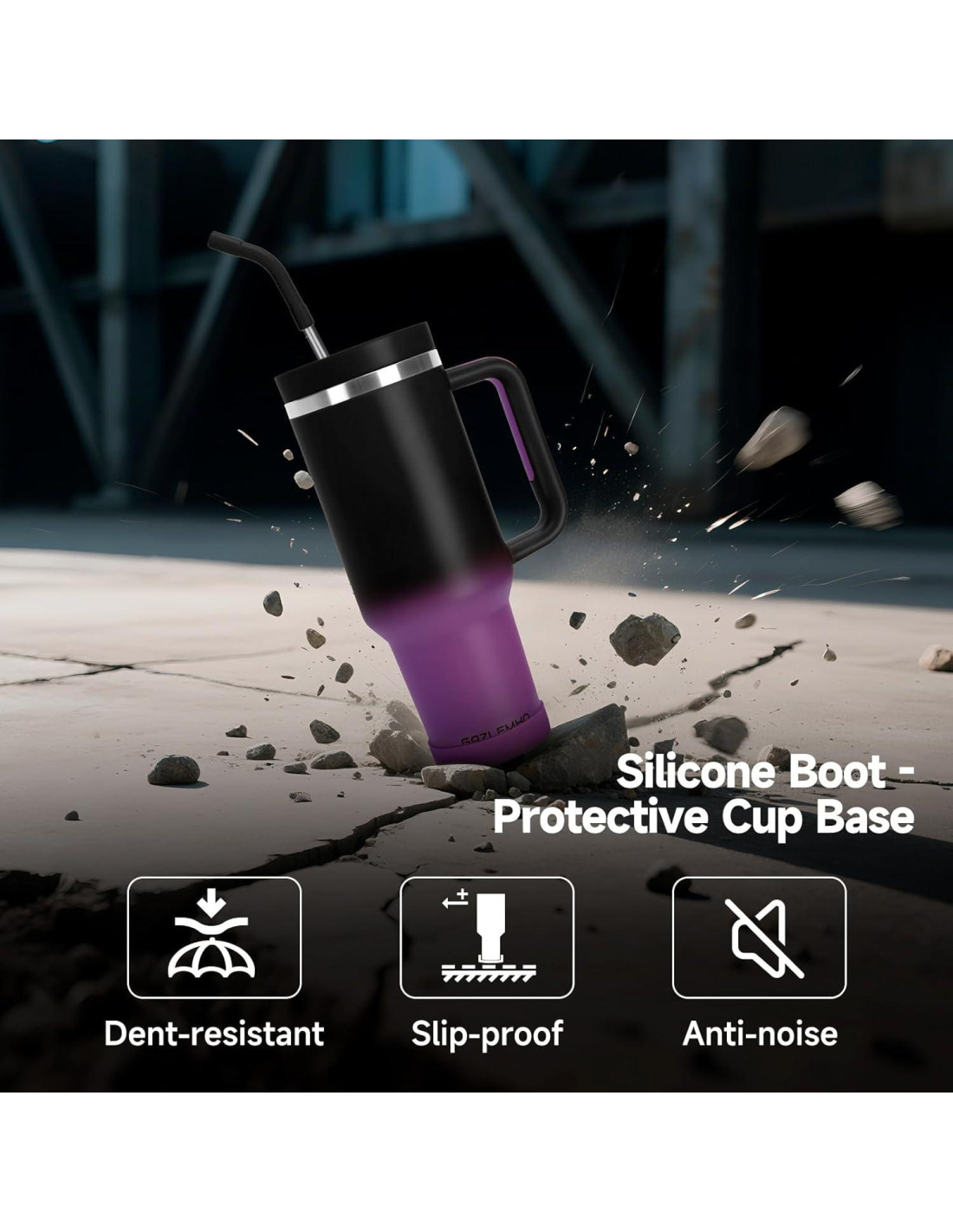 Mantente refrescado todo el día con nuestra taza de viaje de 40oz, ¡tazas de viaje con tapas y pajillas! Su gran capacidad significa menos recargas, mientras que la base en forma de T se adapta perfectamente a los portavasos - viene con una bota de silicona para evitar deslizamientos y proteger tu taza.
