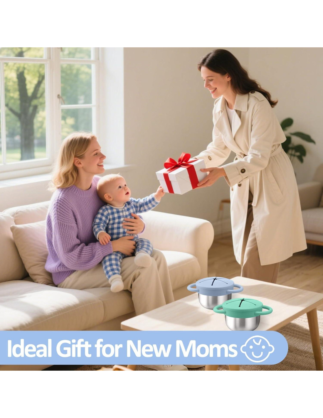 - Un Regalo Considerado para Baby Shower - Estas tazas de snack para niños son un regalo perfecto para baby shower o una sorpresa para el primer cumpleaños. Con colores divertidos y un diseño premium, estos contenedores de snack de acero inoxidable a prueba de derrames son un regalo práctico para bebés que los padres realmente apreciarán