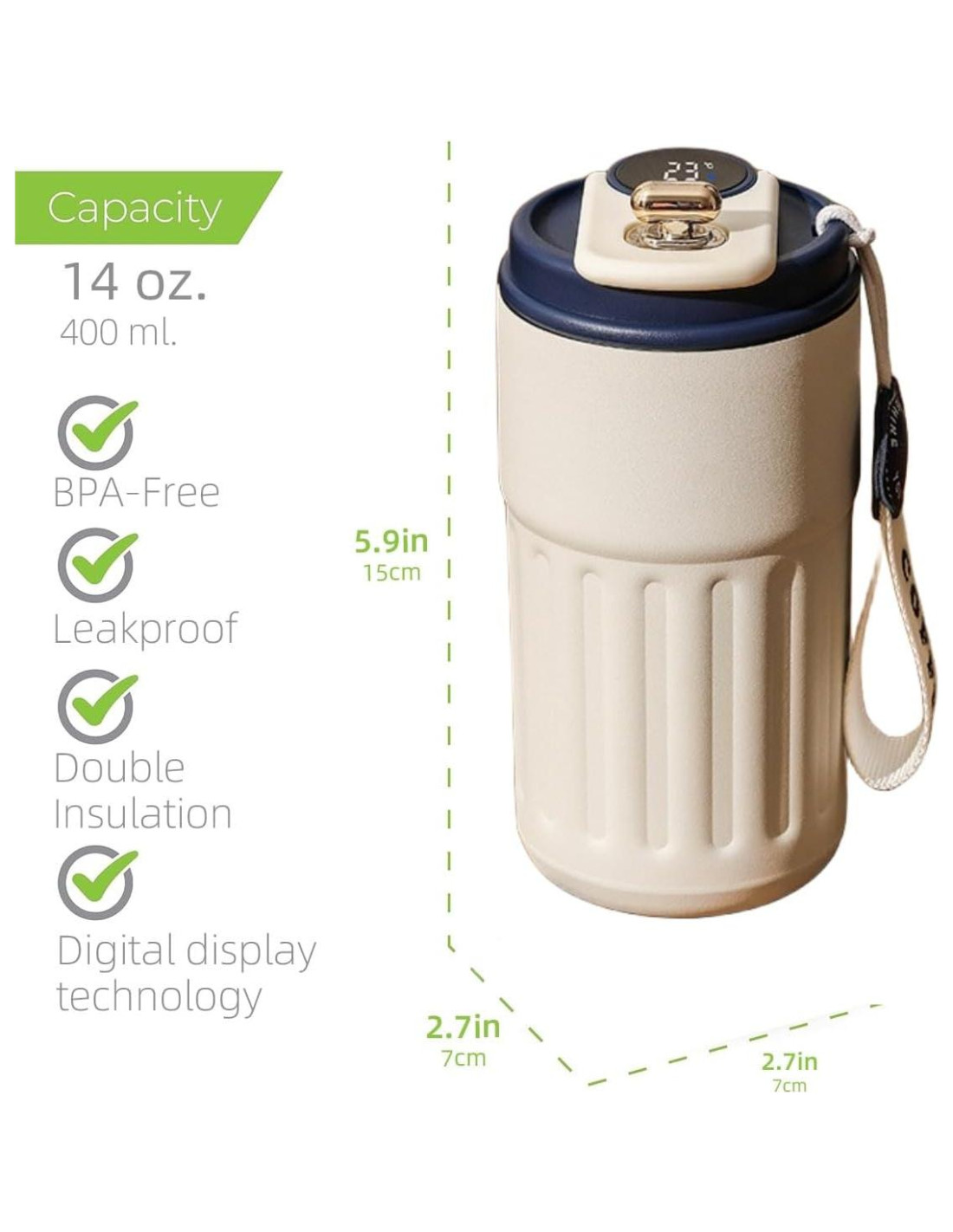 Ya sea en casa, en el camino, en el auto o en movimiento, esta taza es una adición elegante. La taza de café tiene una pantalla clara en Celsius y el aislamiento al vacío de doble pared mantiene las bebidas calientes hasta por 4 horas y las bebidas frías frías hasta por 6 horas. Es perfecta para la oficina, viajar, acampar y fiestas. Esta taza de café de doble pared está hecha de acero inoxidable 316 de alta calidad. La tapa está hecha de plástico libre de BPA, duradera y segura para alimentos. La tapa de nuestra taza de café cuenta con un doble sello de silicona y un diseño de espiral de múltiples capas con un fondo de goma antideslizante. Simplemente atorníllala bien para una prevención perfecta de fugas incluso boca abajo. Puedes ponerla en tu auto, bolsa o cualquier otra cosa.