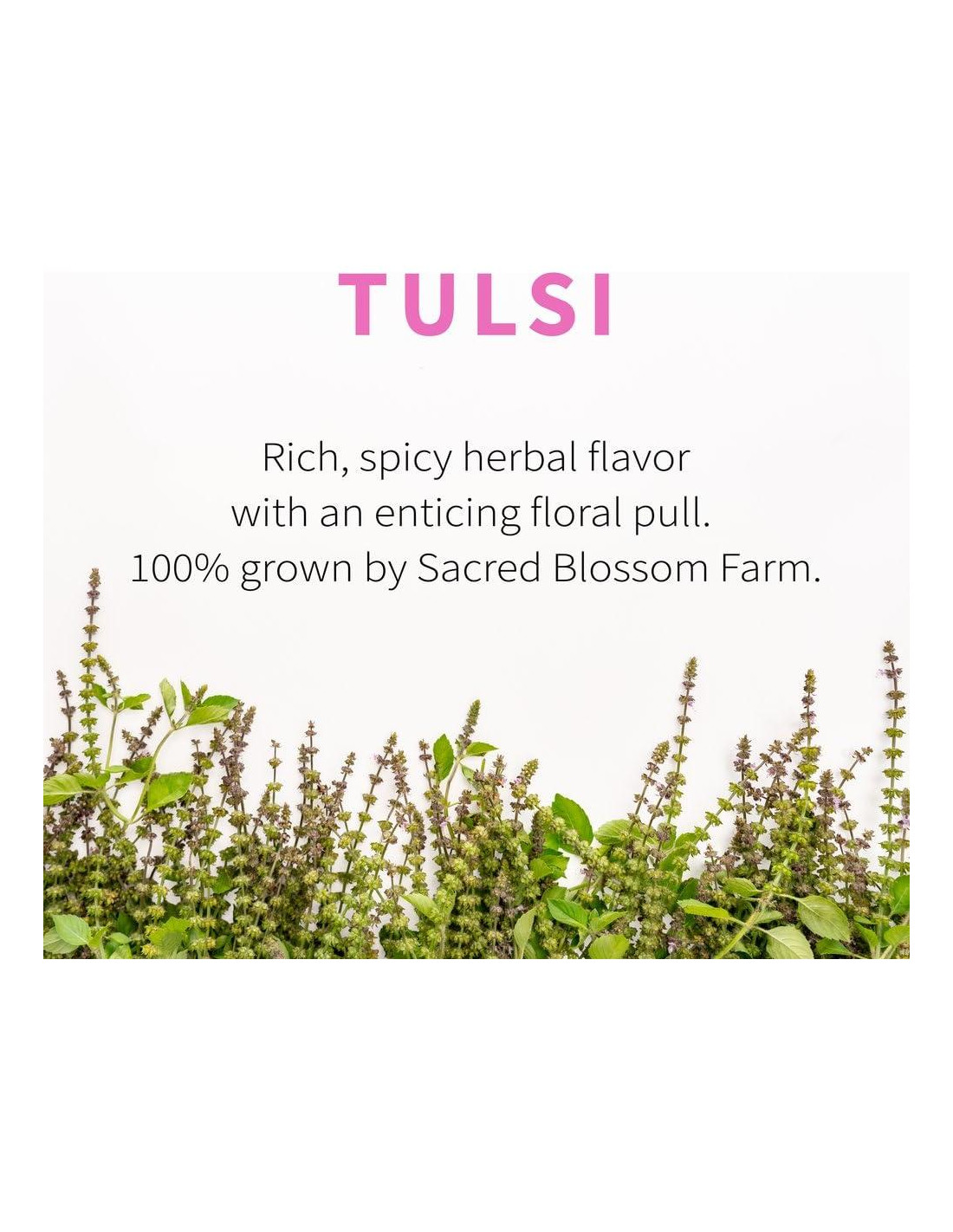 Las hierbas de Sacred Blossom Farm se cultivan en nuestra prístina granja de hierbas en Wisconsin utilizando solo prácticas de agricultura regenerativa. Todas las hierbas se cosechan en su máxima potencia, luego se secan, tamizan y empaquetan en el lugar para preservar su frescura, sabor y constituyentes medicinales. Cultivamos más de 25 hierbas medicinales en nuestra pequeña granja, y te invitamos a probar cada una de nuestras mezclas de té de hierbas artesanales. Ganador en el Festival Internacional del Té de Chicago, Angel es un encantador enredo de hojas, pétalos y frutas. Las Ortigas ricas en minerales y la Avena Lechosa se mezclan con Mentas y Melisa calmantes, iluminadas por dulces Manzanas, Hinojo, Saúco y Pétalos de Rosa. Las Remolachas proporcionan nutrientes y convierten esta infusión única en un glorioso color rubí. Maravilloso servido caliente, o asombrosamente delicioso cuando se sirve helado. Esta mezcla es un maravilloso ritual diario para nutrir el cuerpo. No encontrarás otro té para dormir como Dream. La Amapola de California, una hierba increíble y poco utilizada, sirve como base para nuestro famoso té que mejora los sueños. Tulsi, Corteza de Cereza Silvestre, Melisa, Hinojo y Nepeta trabajan en armonía para relajar tu sistema y equilibrar el sabor soñador. El sabor brillante y calmante de esta mezcla única se puede disfrutar en cualquier momento y es una gran alternativa para la hora feliz para relajarse de los estreses diarios. El ingrediente principal en Tiger es Tulsi (Albahaca Sagrada), la hierba más sagrada de la India. En la mitología hindú, el Tigre es un símbolo de energía y fuerza. Tulsi, Ashwagandha y Ginseng son adaptógenos, hierbas conocidas por ayudar al cuerpo a adaptarse al estrés y normalizar las funciones corporales. La Hierba de Limón y el Hinojo realzan los sabores de esta bebida única sin cafeína, y juntas estas hierbas trabajan para promover la atención enfocada y una energía sostenida como la de un tigre. La Tortuga es un símbolo de calma, protección, abundancia y fertilidad. El ingrediente principal de nuestro Té de Tortuga, la Melisa, es calmante y edificante, mientras que la Avena Lechosa puede ayudar a nutrir el sistema nervioso. La Hoja de Frambuesa Silvestre, Tulsi y Menta de Chocolate añaden al delicioso sabor. Los efectos refrescantes y estabilizadores del Té de Tortuga se pueden disfrutar de inmediato, y cuando se bebe a diario puede ser un poderoso agente para apoyar la calma y el bienestar general. Los ingredientes herbales en el Té de Inmunidad se han utilizado para el apoyo inmunológico durante siglos. Las Yemas de Pino Blanco, la Salvia y la Melisa saben frescas y refrescantes en un dolor de garganta, y las flores de Hinojo proporcionan un sutil sabor floral. Al primer signo de enfermedad, el Té de Inmunidad debe beberse varias veces al día durante hasta cinco días para fortalecer el sistema inmunológico. No está destinado a ser un tónico herbal diario, sino un remedio agudo. Breathe es más que solo una taza de té sabrosa. Cada hierba en el té Breathe fue seleccionada por su capacidad para ayudar a despejar y confortar las dolencias sinusales y respiratorias. La Mullein, un ingrediente principal, ayuda a aflojar y eliminar el moco obstruido. Las Bayas de Saúco, la Flor de Saúco, el Tomillo, el Trébol Rojo, el Hinojo y el Pino Blanco apoyan los pulmones y la salud respiratoria. Las Mentas y la Hoja de Stevia completan el sabor, haciendo de este té un favorito tanto por su sabor como por su función. Nuestro té de Chocolate con Menta utiliza una variedad única de menta extra-potente que tiene una dulzura chocolateada que hará que se te haga agua la boca. La menta se cultiva completamente en nuestra granja y se procesa dentro de una hora después de la cosecha para preservar su frescura y perfil de sabor complejo. Tulsi, o Albahaca Sagrada, también ha sido llamada "Yoga Líquido" debido a sus efectos relajantes y fortalecedores cuando se bebe regularmente. Nuestro Tulsi es una forma sabrosa de apoyar a tu cuerpo en el manejo del estrés físico, mental y metabólico. Estamos orgullosos de traerte este espécimen más fresco y de la más alta calidad de esta renombrada hierba, cultivada 100% en nuestra granja.