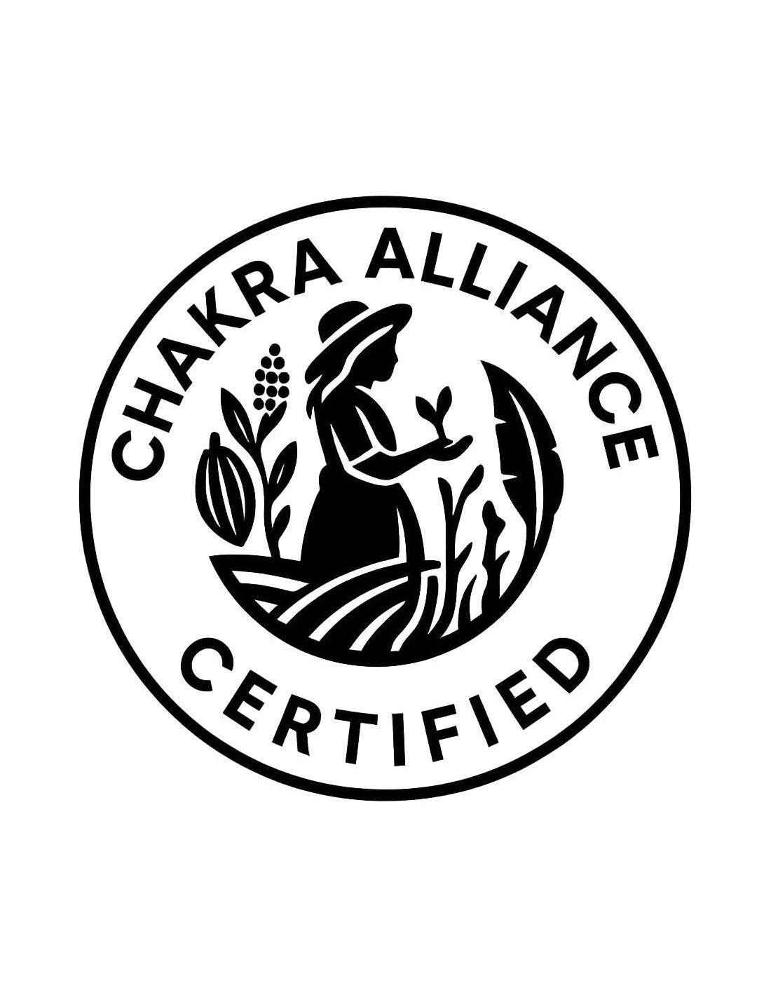 - CERTIFICADO POR CHAKRA ALLIANCE | Nuestra guayusa está certificada por Chakra Alliance - una certificación basada en la comunidad que va más allá de lo orgánico y el comercio justo. Cada kilo comprado contribuye con USD 0.20 directamente a las familias amazónicas que la cultivan, ayudando a preservar la cultura, los bosques y el futuro.