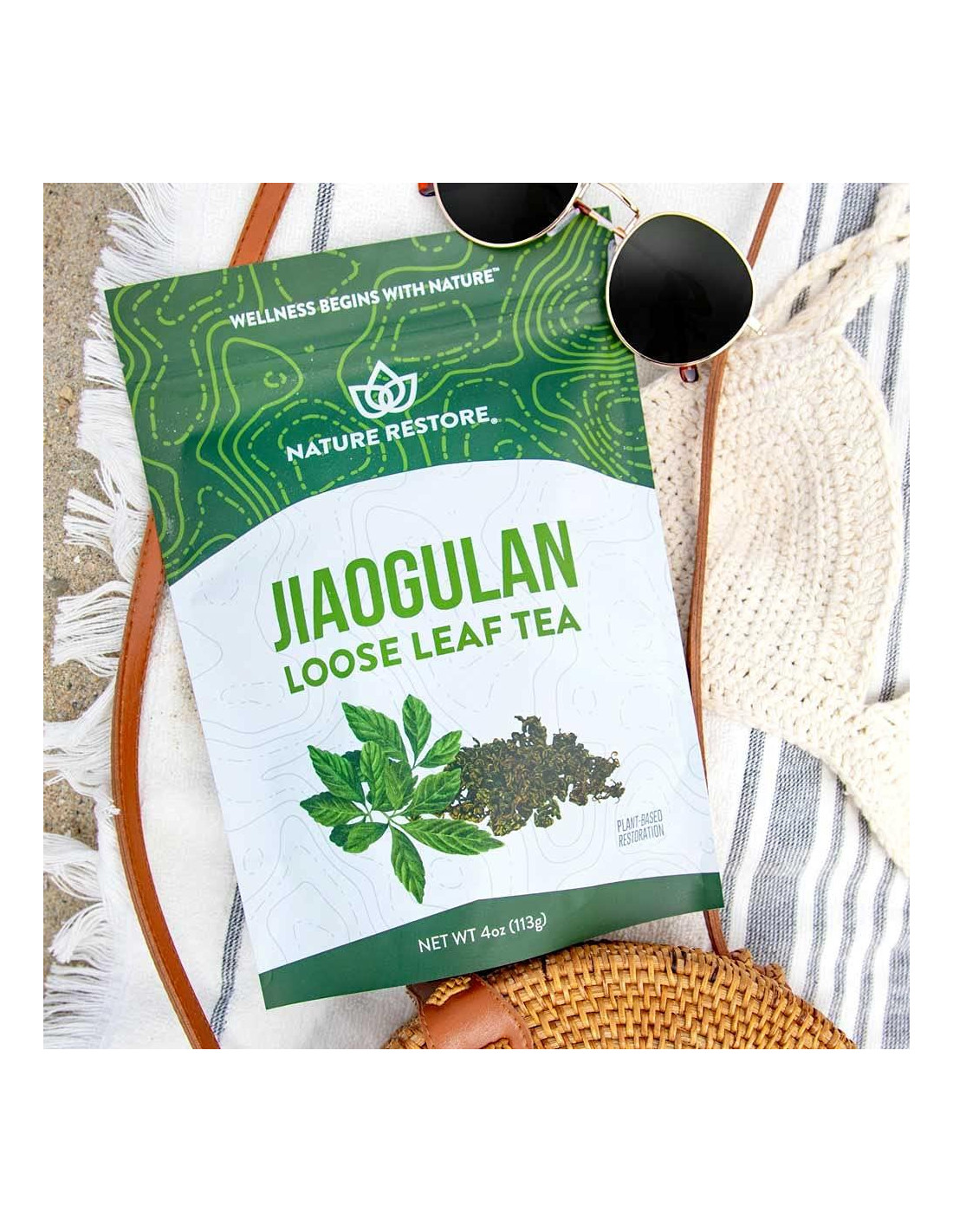 Jiaogulan (Gynostemma pentaphyllum) es una planta enredadera nativa de las regiones montañosas de China. Los nativos de esas regiones han utilizado tradicionalmente el Jiaogulan como una bebida de té energizante y como un tónico herbal para numerosas condiciones. La leyenda dice que varios lugareños que bebían regularmente té de Jiaogulan vivieron más de 100 años, de ahí el infame nombre: 'Hierba de la Inmortalidad'. El té de Gynostemma a menudo se denomina 'Ginseng del Sur'. Con más de 120 saponinas y gypenosidos, el Jiaogulan tiene aproximadamente 6 veces más de estos compuestos que el ginseng. Esta hierba puede estimular la producción de dismutasa de superóxido - el antioxidante natural de nuestro cuerpo - para ayudar a combatir los radicales libres. Conocido por ser adaptogénico, el té de Jiaogulan puede promover respuestas defensivas no específicas al estrés y puede tener un efecto calmante en el cuerpo. Nuestro té de Jiaogulan tiene un sabor herbal suave con toques de dulzura. Algunos lo han descrito como reminiscente del té verde matcha, pero ten la seguridad de que el Jiaogulan es naturalmente libre de cafeína. Descubre los beneficios holísticos para la salud de la hierba de la inmortalidad con una taza de té de Jiaogulan al día. ¡Disfruta de este té caliente o helado! En Nature Restore, tomamos el camino largo y seguro para obtener, probar y fabricar nuestros productos para que los disfrutes. Nuestros ingredientes son probados por terceros para garantizar que tus productos estén libres de metales pesados, pesticidas y bacterias que puedan ser dañinas. Hacemos esto porque queremos que te sientas seguro y confiado de que cuando nuestros productos lleguen a tu puerta, estás recibiendo la más alta calidad y los productos más seguros posibles. Aprende más sobre nosotros en www.naturerestore.com