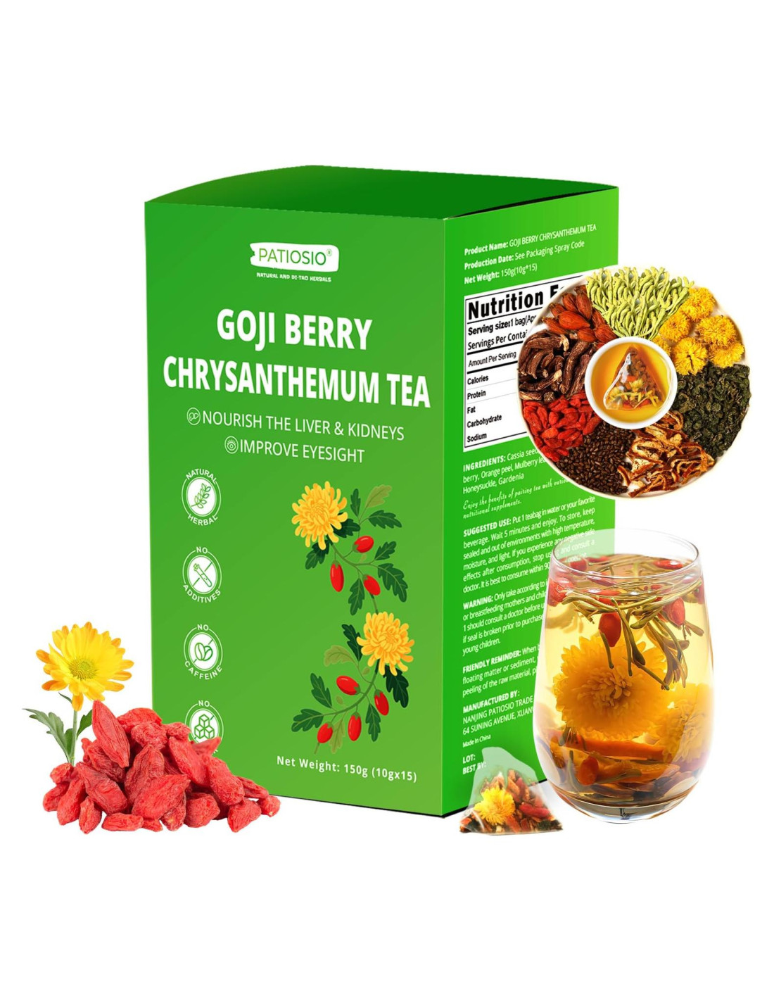 - 8 Ingredientes Naturales: Nuestro Té de Crisantemo y Goji Berry está elaborado con una mezcla perfecta de ingredientes naturales de alta calidad, incluyendo bayas de lobo chinas, crisantemo, raíz de diente de león, cáscara de naranja, hojas de morera, madreselva y gardenia. Cada componente es cuidadosamente seleccionado para ofrecer los beneficios de la naturaleza sin aditivos.