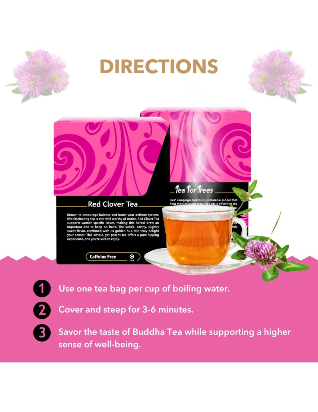 - SIN CAFEÍNA - El Té de Trébol Rojo de Buddha Teas es sin cafeína, certificado orgánico y libre de aditivos y saborizantes. Este té no tiene edulcorantes artificiales y está hecho solo con ingredientes naturales.
