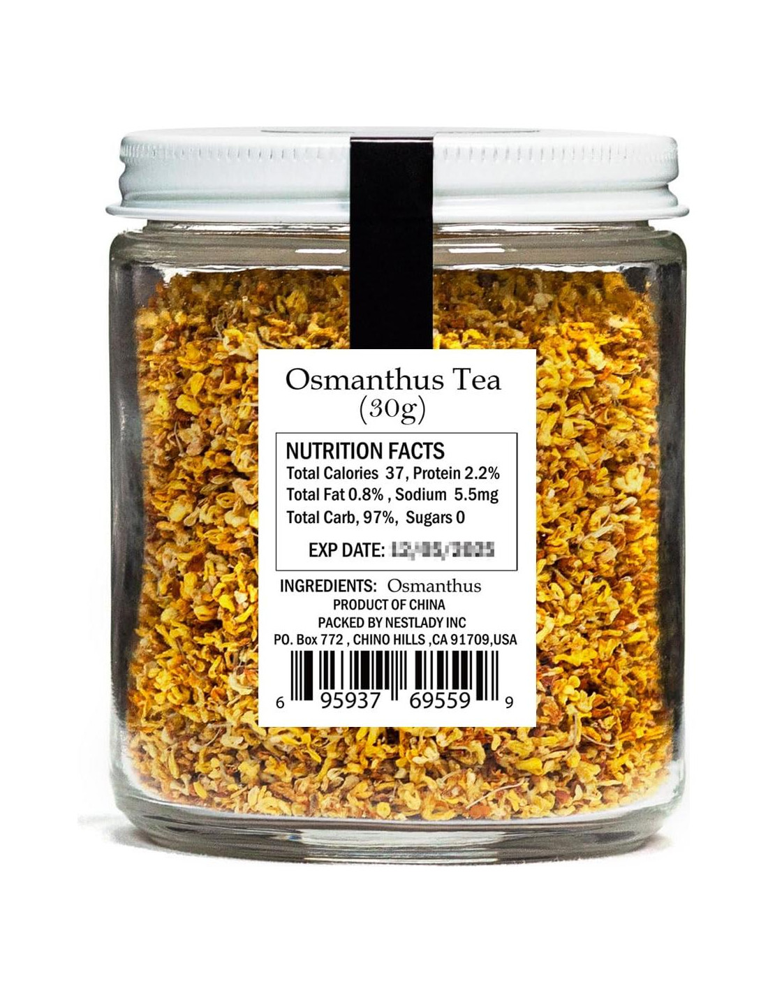 NESTLADY solo busca hierbas cosechadas a mano, flores aromáticas, frutas frescas, especias premium, raíces, semillas y botánicos raros de todo el mundo. La hermosa flor de osmanthus amarillo-dorado, cultivada en el sur de China, tiene una fragancia única, dulce y mantequillosa. La infusión de color amarillo verdoso pálido ofrece un aroma encantador y un regusto fragante persistente. Agrega un sabor floral dulce a tu té helado para el verano con té verde, té oolong, té negro y otras recetas. También puedes hacer varios bocadillos saludables o comida para fiestas para tu familia y amigos con esta flor de osmanthus de primera calidad, como Gelatina de Osmanthus, Gelatina de Osmanthus y Coco, Galleta de Osmanthus, Pastel Chiffon de Osmanthus. La cantidad de osmanthus infusionado no debe ser demasiado. La temperatura del agua es generalmente de unos 85 grados (29.4 grados Celsius). Vierte un poco menos de agua para humedecer completamente las flores y el té. Finalmente, llena el vaso con agua y deja reposar durante 2 a 3 minutos. Bebible. Aviso de la FDA: Estas declaraciones no han sido evaluadas por la Administración de Alimentos y Medicamentos. Este producto no está destinado a diagnosticar, tratar, curar o prevenir ninguna enfermedad. Disfrutamos y estamos agradecidos por todo lo que crece en el planeta. Buscamos la naturaleza más original. Apreciamos cada carácter de la planta. Cuidamos la vida diaria al traer color, aromas y sabores de las plantas. Te invitamos a unirte a NESTLADY y estar con nosotros. Toca la naturaleza y siente la vida humedecer las cosas en silencio.