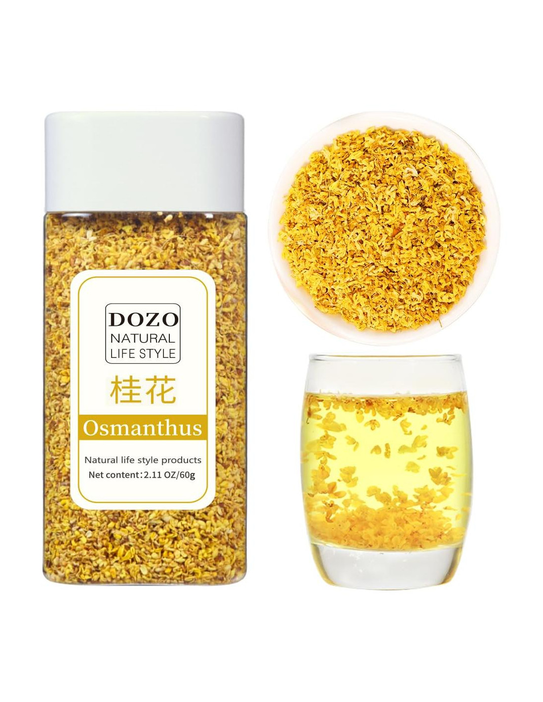 - ¿Cómo comer?: Toma 4-6 gramos de flores de osmanthus, colócalas en la taza, vierte 1/3 de agua hirviendo, agita suavemente la taza, continúa vertiendo agua, espera unos minutos y luego bebe. El osmanthus se puede servir con rosas, jazmín, té verde o regaliz. El osmanthus también se puede usar como ingrediente en una variedad de recetas, como postres, productos horneados y platos salados.