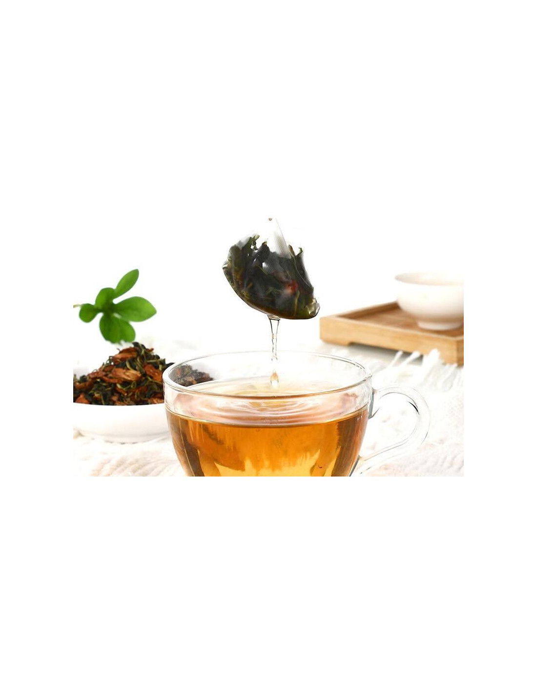 - Embalaje Conveniente: Bolsa resellable, Bolsita de Té en Pirámide