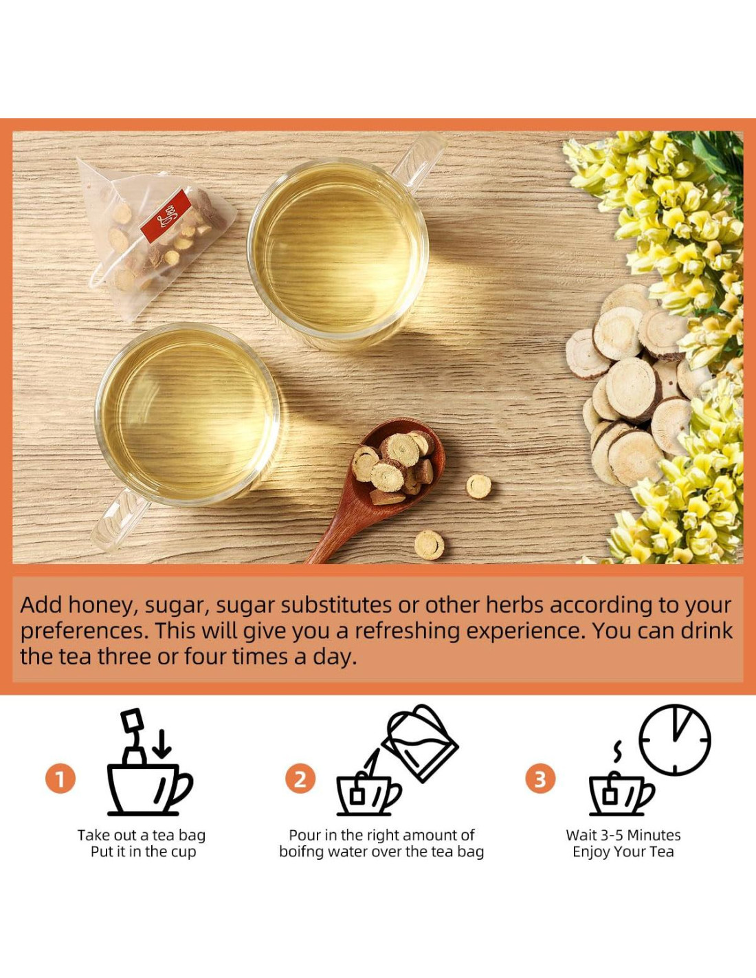 - Las bolsas de té tienen solo un ingrediente, 100% raíz de regaliz silvestre pura, sin aditivos, sin saborizantes, sabor puro y natural de raíz de regaliz.