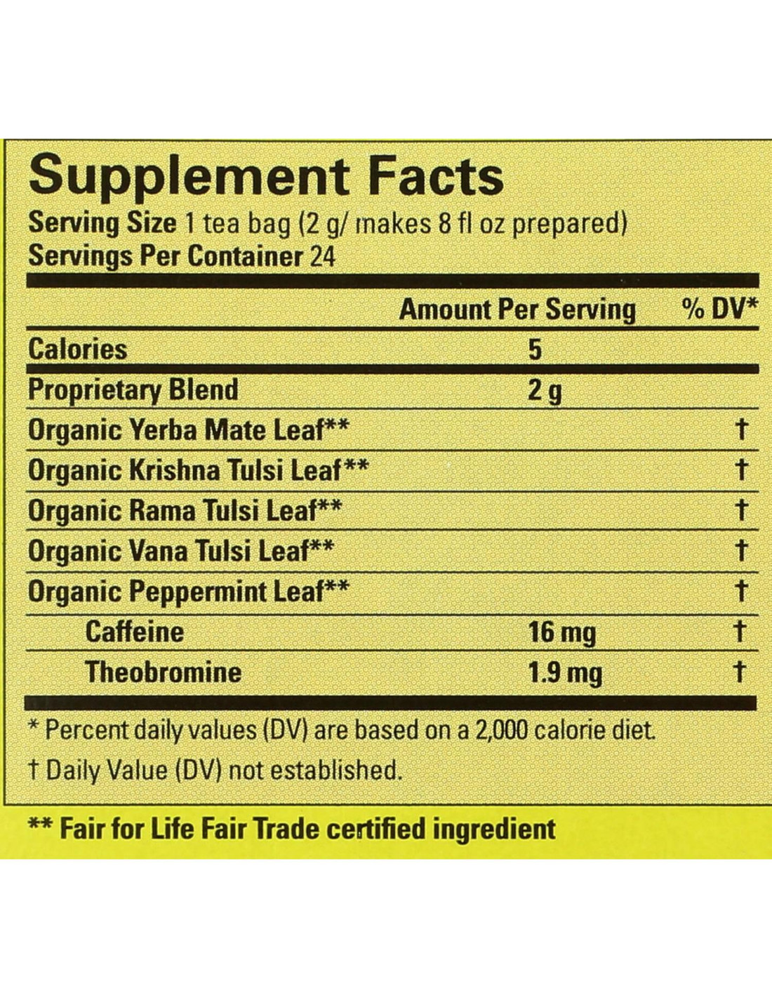 Las bolsas de té experimentan la fusión de dos antiguas tradiciones herbales. Tulsi es la 'reina de todas las hierbas' de la India. El yerba mate es el 'regalo de los dioses' de Sudamérica. Mientras tulsi quita el peso de tus hombros, mate
