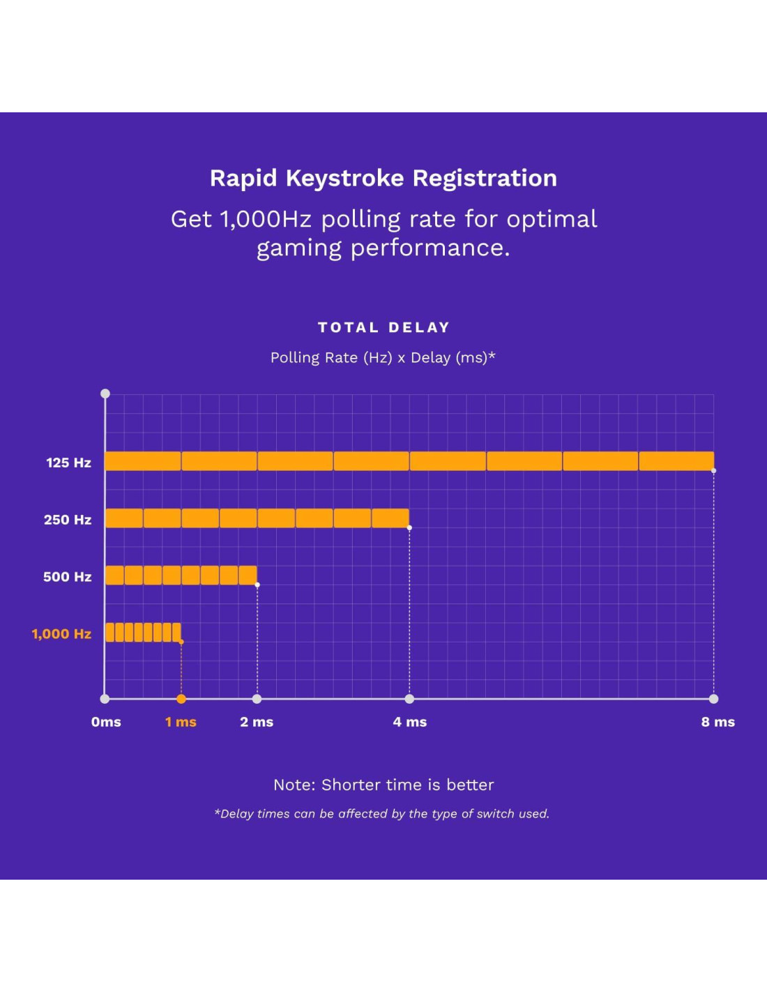 - Increíble Rendimiento en Juegos: La sensación de escritura sólida del GMMK PRO hace que cada pulsación se sienta de manera confiable consistente con poco movimiento de las teclas, perfecto para construir memoria muscular mientras juegas. A diferencia de la mayoría de los otros teclados personalizados, el GMMK PRO cuenta con tasas de sondeo rápidas de 1,000 Hz para un registro instantáneo de pulsaciones sin errores, ideal para FPS, MOBA, Battle Royale y otros juegos de ritmo rápido.