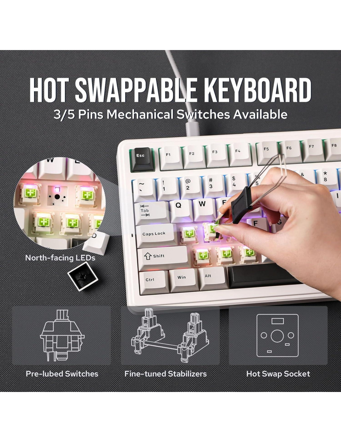 - PCB Intercambiable y Interruptores Lineales Preengrasados Disfruta de la flexibilidad de personalizar tu experiencia de escritura con los sockets intercambiables de todas las teclas del F99. Soporta interruptores mecánicos de 3/5 pines. Cambia fácilmente los interruptores mecánicos para adaptarlos a tu preferencia con un simple método de tirar y enchufar. Además, todos los interruptores están preengrasados de fábrica y han sido diseñados meticulosamente para longevidad y durabilidad, asegurando una experiencia de escritura confiable durante años.