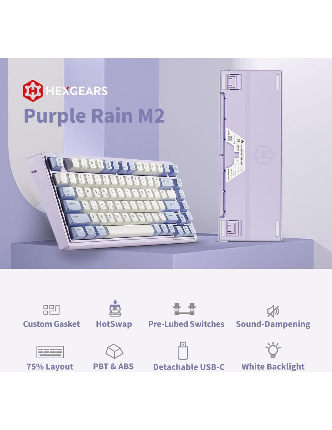 - [Diseño TKL Optimizado al 75%] El teclado con cable desmontable Purple Rain M2 viene en un formato tenkeyless. Con su tamaño de teclado del 75%, retiene todas las teclas esenciales en un diseño ergonómico de 83 teclas, haciendo que este teclado crema sea perfecto para escritorios ordenados y configuraciones móviles sin sacrificar funcionalidad.