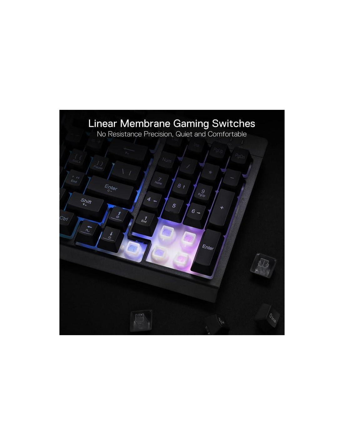 - 26 Teclas Anti-fantasma y Controles Multimedia Dedicados - Con teclas anti-fantasma (teclas con un guion bajo) que permiten que 26 teclas funcionen simultáneamente para respuestas rápidas y precisas en el juego como lo pretendías. Los controles multimedia dedicados te permiten reproducir, pausar y saltar multimedia directamente desde el teclado para que tu juego sea fluido e ininterrumpido.