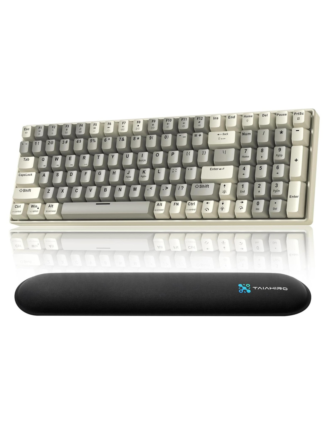 - Diseño Ergonómico + Reposamuñecas: Presenta un diseño inclinado y pies ajustables para garantizar una experiencia de escritura cómoda. Con sus teclas en forma de U, proporciona una sensación natural y receptiva que reduce la fatiga de las manos. Además, el teclado está equipado con un reposamuñecas que proporciona un soporte óptimo y mejora aún más la comodidad durante su uso.