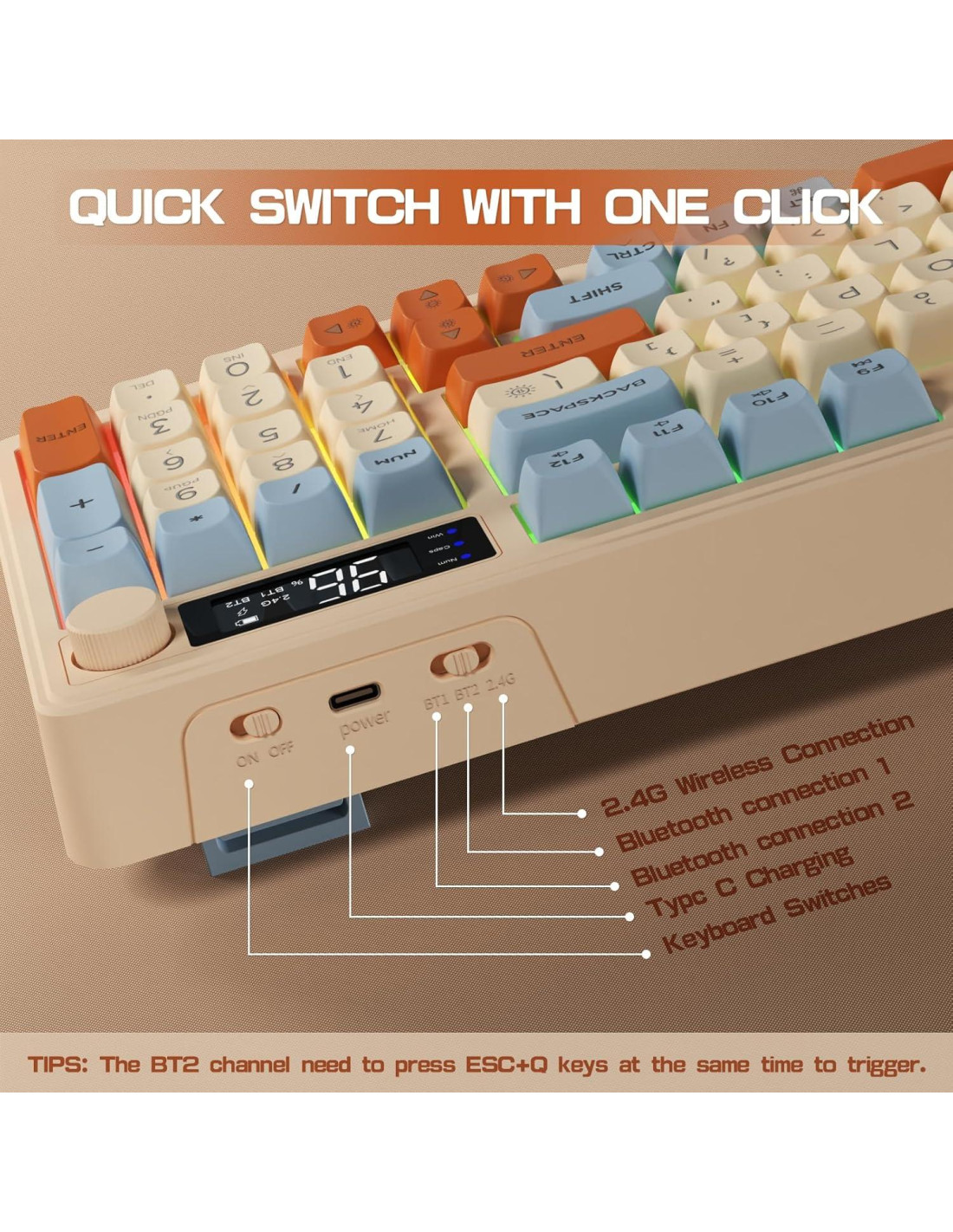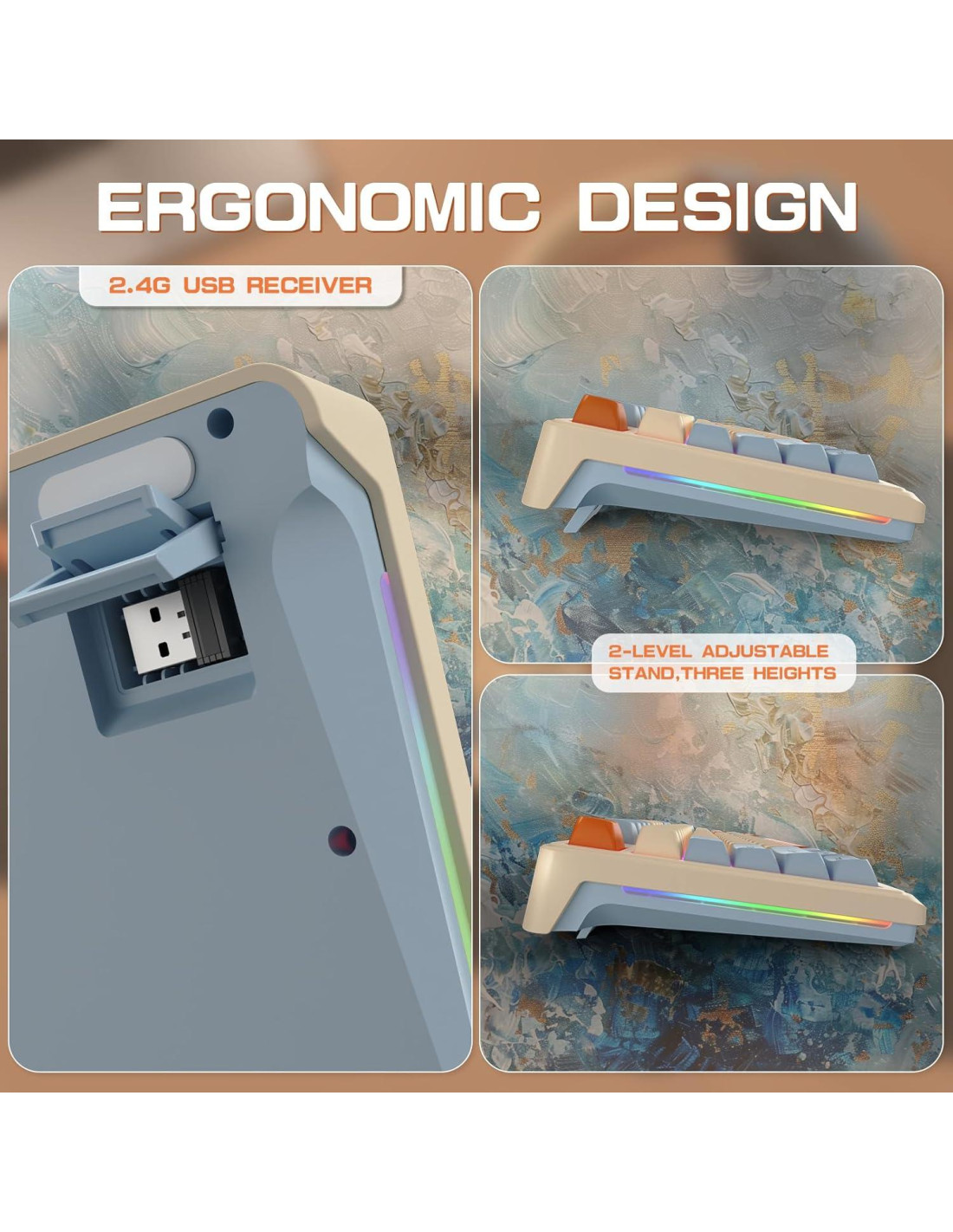 - [Diseño minimalista de 96 teclas] Este teclado de juego adopta un diseño de 94 teclas, haciendo que la complejidad sea simple y un diseño exquisito, añadiendo una atmósfera moderna a tu espacio de escritorio. Este teclado cuenta con un diseño ergonómico que es cómodo de usar y se siente suave, brindándote la experiencia definitiva para largos períodos de escritura y juego.