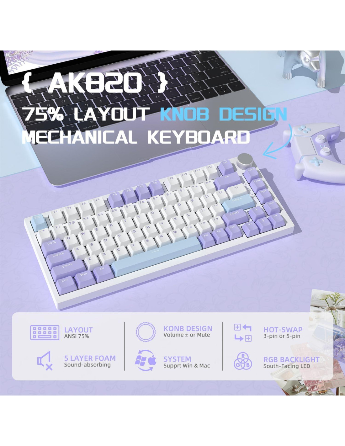 - [Soporte de Controlador] Con el software del controlador del teclado mecánico gaming AJAZZ AK820, puedes volver a personalizar el teclado mini del 75% según preferencias personales, configuraciones de iluminación, configuraciones de función de botones y configuraciones de macros, etc. Alta precisión, respuesta rápida y sin conflictos entre todas las teclas son las características de este teclado mecánico, que es compatible con Windows Vista/7/8/10/11, Mac, Android.