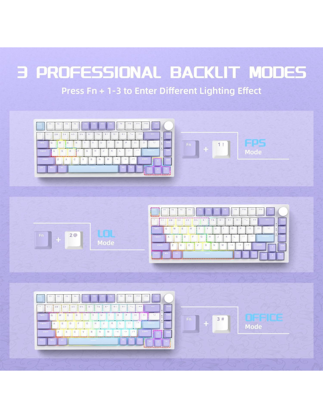 - [Teclado Mecánico Intercambiable] ¡Sin ruidos molestos! Con este teclado personalizado, puedes personalizar tus interruptores favoritos y es compatible con la mayoría de los interruptores mecánicos de 3/5 pines. El teclado lineal proporciona una sensación de vuelo al escribir, requiriendo solo una fuerza mínima para discernir caracteres con precisión y asegurando una productividad prolongada y cómoda.