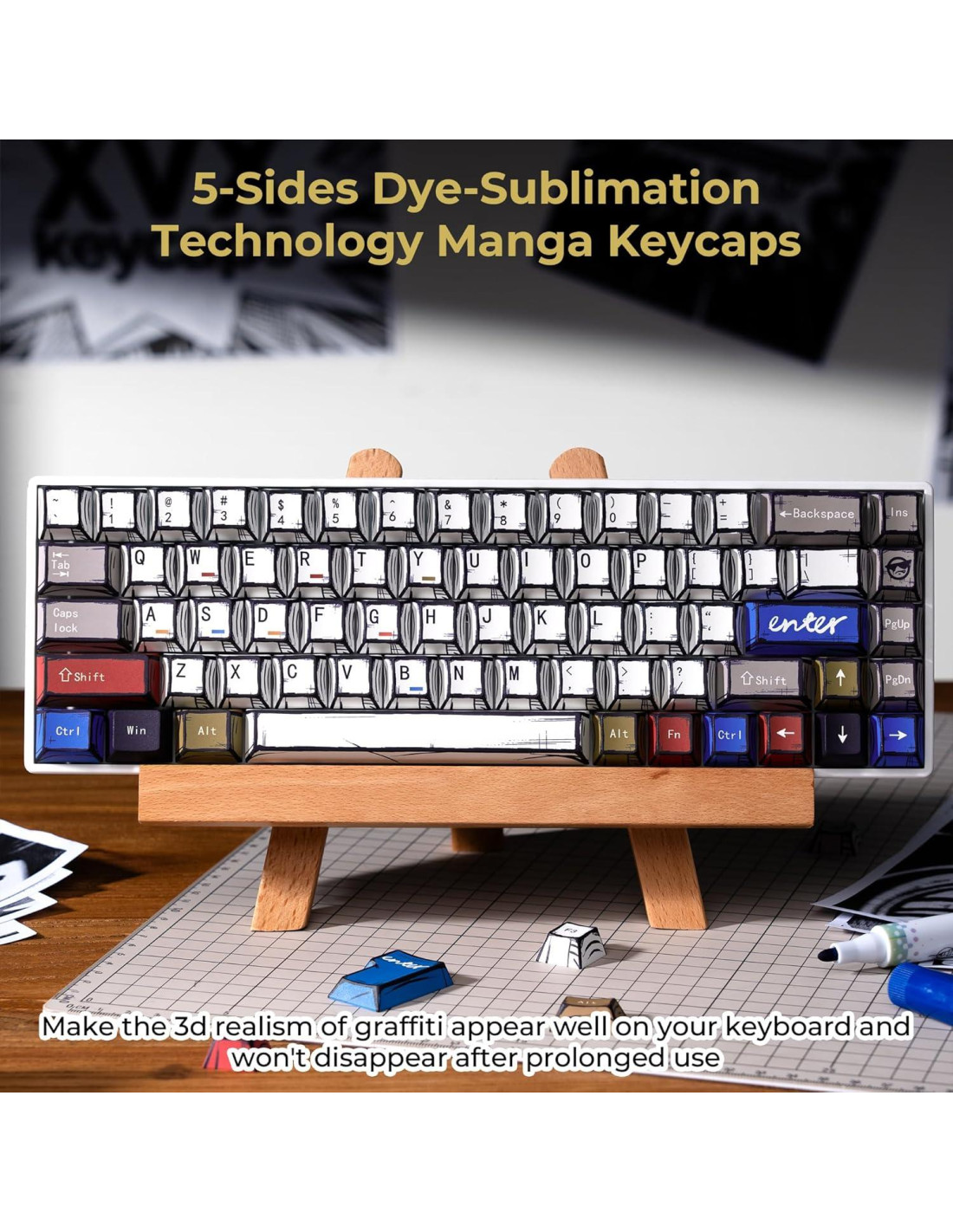 - Teclas de Sublimación de Tinte: La avanzada tecnología de sublimación de tinte permite que el color penetre en las teclas, no solo el efecto visual 3D del graffiti aparece bien en las teclas, sino que este efecto visual no se desvanecerá con el uso prolongado de las teclas.