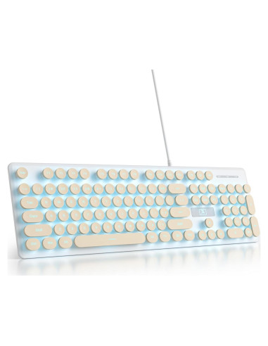 - [Teclado punk retro] Este teclado de máquina de escribir es un verdadero dispositivo "plug and play", brindándote una sensación de escritura cómoda y un toque estable, que es resistente. La única tecla redonda hace que este teclado sea diferente del teclado tradicional y es un gran regalo de Navidad.