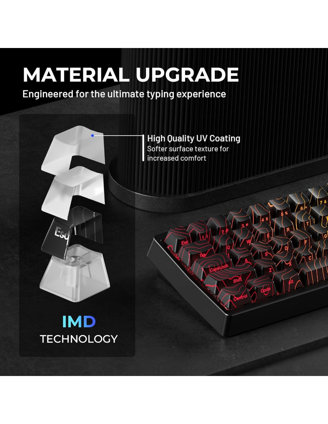 - [Teclas Brillantes con Patrón] La tecla personalizada presenta tecnología IMD avanzada por primera vez, permitiendo que la luz del teclado pase a través de un patrón topográfico clásico, haciendo que tu teclado sea verdaderamente único con el brillante resplandor de estas teclas brillantes. Además, la tecnología IMD puede asegurar que la tecla de espacio esté recta, lo que es una innovación tecnológica.