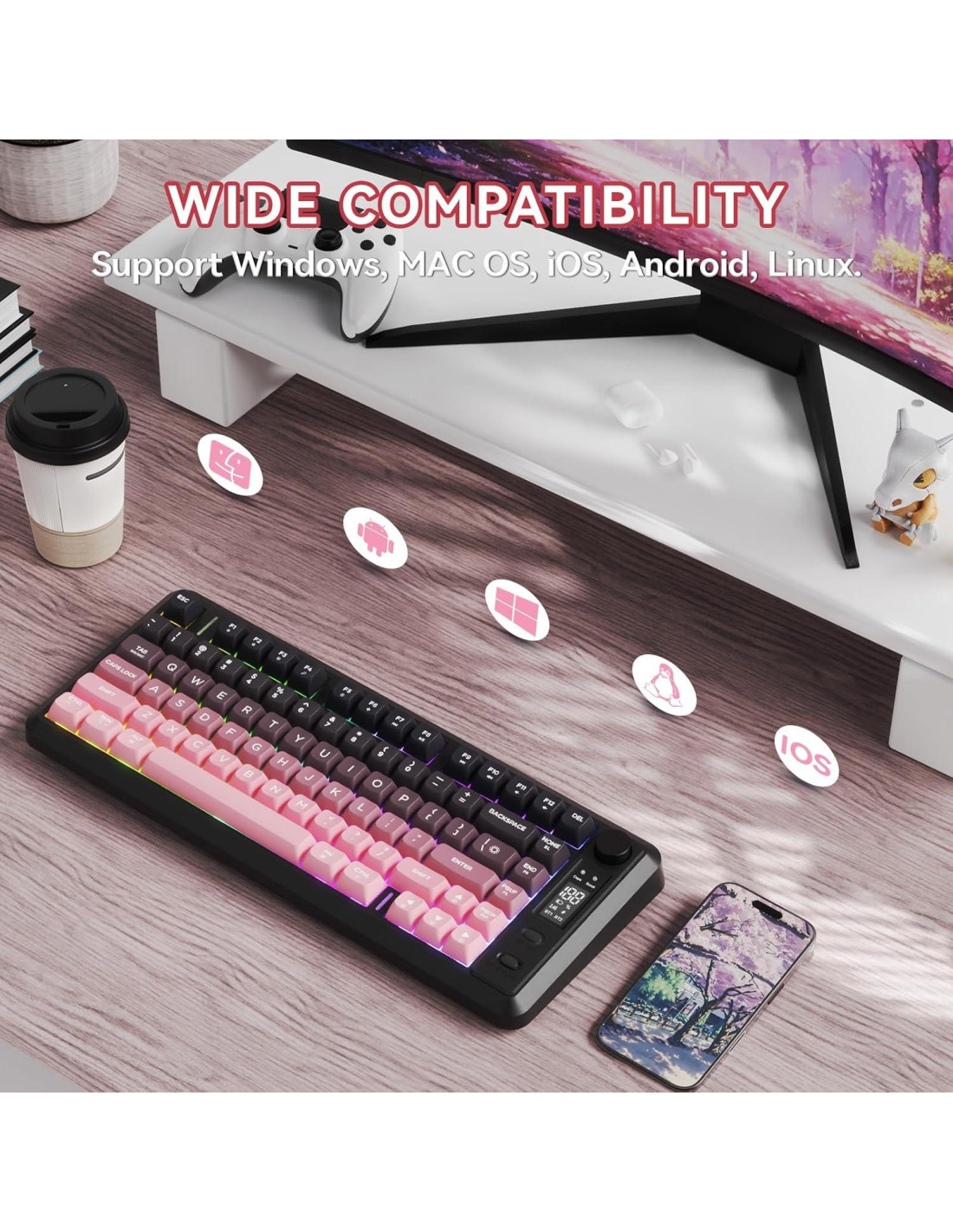 - [Teclas de Color Gradiente PBT] Destaca con las únicas teclas PBT en gradiente del M75, una primicia para teclados de membrana. Diseñadas para durabilidad y estilo, estas teclas texturizadas mejoran la comodidad al escribir mientras imitan la sensación táctil de los interruptores mecánicos, perfectas para juegos y uso en oficina.