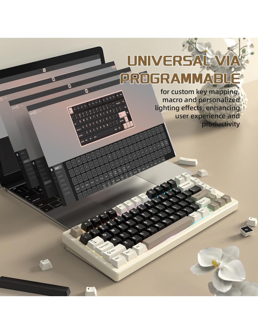 - [Soporte de Personalización Avanzado] El X75 es altamente personalizable, soportando el firmware de código abierto VIA genuino y el controlador en la nube. Configura fácilmente la retroiluminación de las teclas, combinaciones de teclas y configuraciones de macros para adaptar el teclado a tus preferencias exactas y mejorar tu experiencia de juego o productividad.