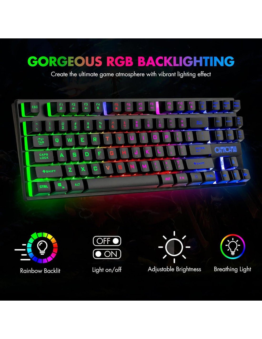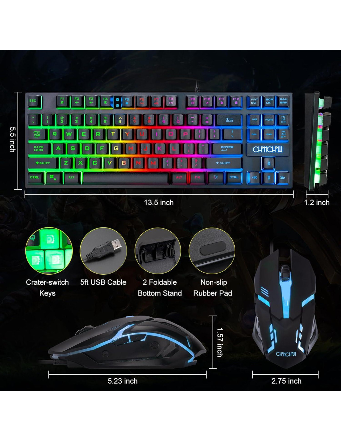 - Diseño Compacto de 87 Teclas----No hay teclas numéricas adicionales, y hay más espacio en el escritorio para mover el ratón según tus necesidades en la oficina o en casa. Estarás feliz con el ahorro de espacio. Tamaño del teclado gaming pequeño: 13.5*5.5*1.2 inches (34,29*13,97*3,05 cm)