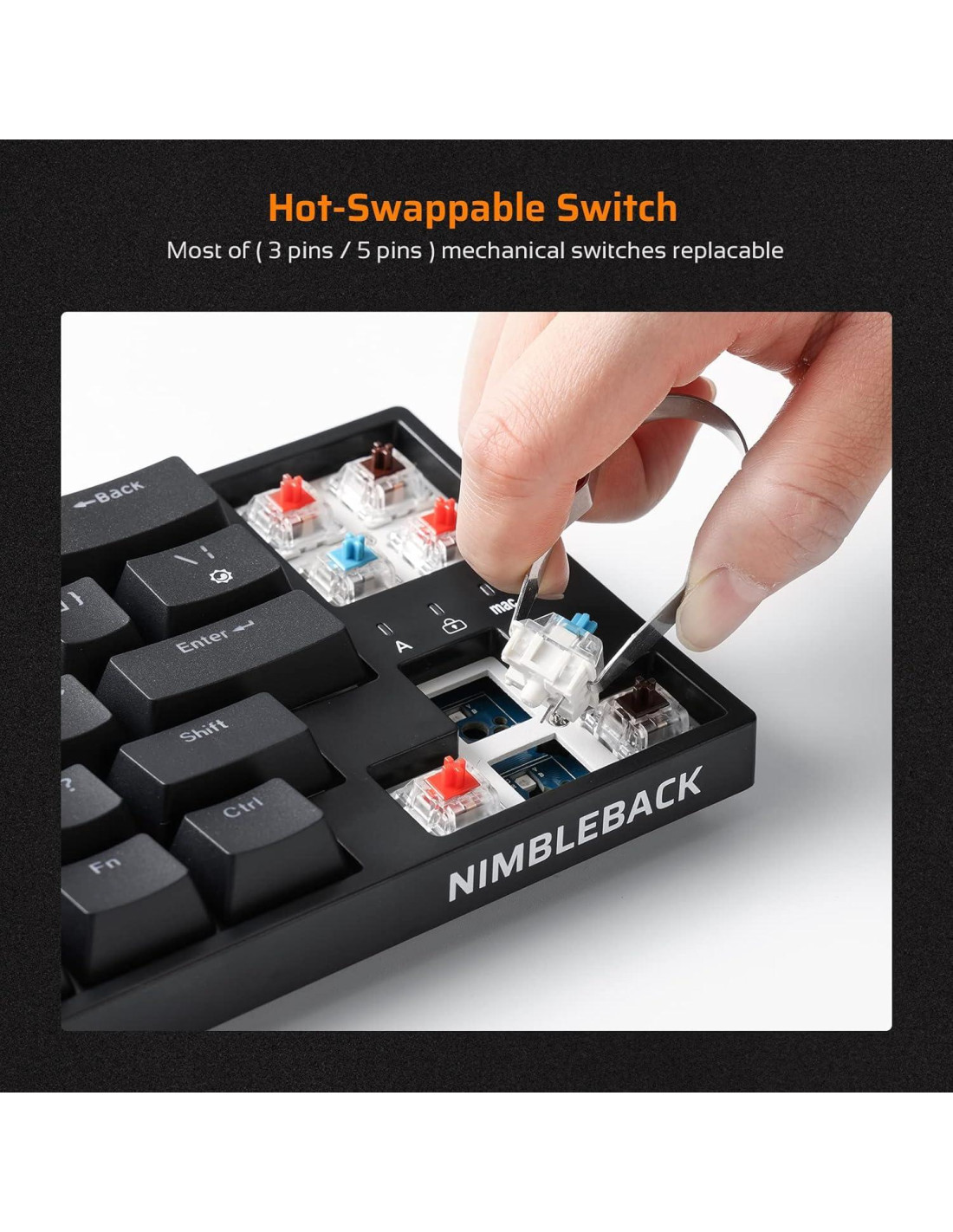 - Interruptor Azul Táctil Intercambiable en Caliente - PCB intercambiable en caliente permite reemplazar interruptores de 3 pines/5 pines, compatible con cualquier interruptor de estilo MX libremente (marcas como Gateron y Kailh, etc.). Equipado con un distintivo interruptor azul con sonido clic y bulto táctil, es especialmente adecuado para aquellos que buscan una experiencia de escritura satisfactoria y precisión.