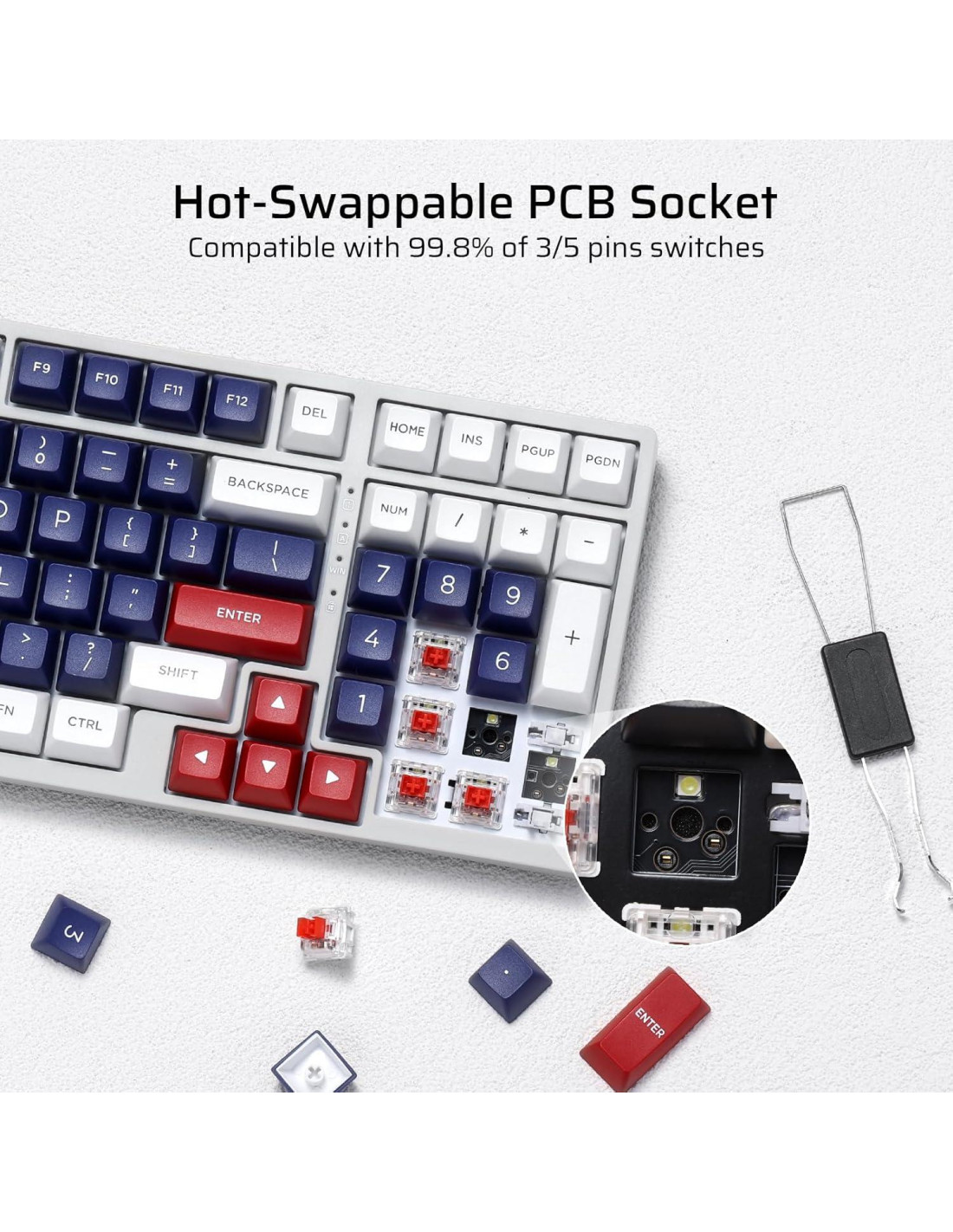- PCB intercambiable para fácil moldeado - PCB intercambiable permite reemplazar interruptores de 3 pines/5 pines libremente, compatible con cualquier interruptor estilo MX (marcas como Gateron y Kailh, etc). Ideal para entusiastas del moldeado y personalización de teclados.