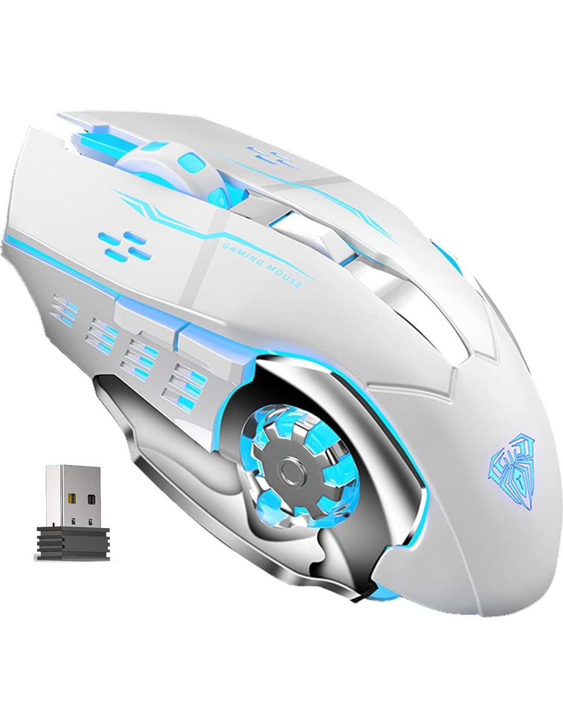 - Ratón Gaming Inalámbrico Blanco SC100: Transmisión Inalámbrica Estable de 2.4G; Ratón Recargable de Batería de 800mAh; Diseño Óptico Ergonómico Cómodo; Chip de Juego Ic y 3 DPI Ajustables; 7 Retroiluminaciones LED Coloridas que Respiran