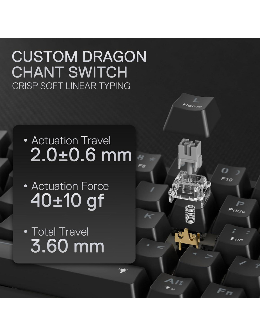 - Interruptor Custom Dragon Chant - Con interruptores lineales personalizados gruesamente engrasados combinados con un factor de forma de junta, el K709 presenta un recorrido lineal rico y acolchado con retroalimentación de escritura suave y cremosa.