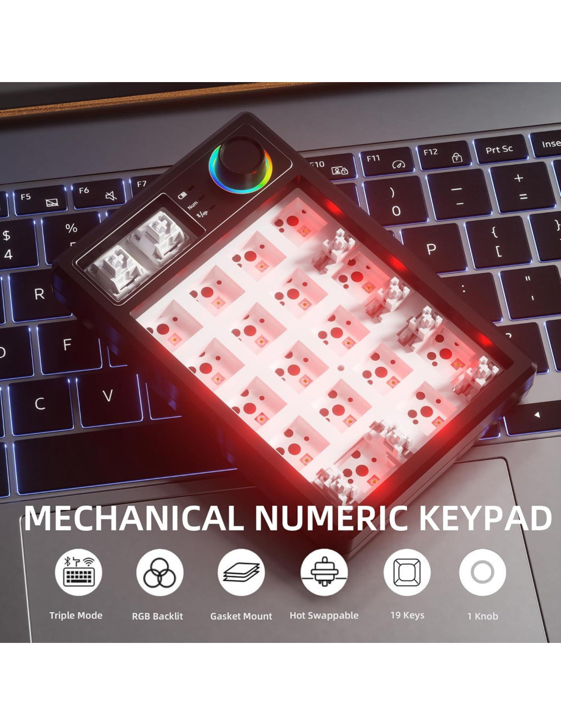 - Teclado Numérico Bluetooth con Gasket: El teclado numérico K19 adopta la estructura de instalación tipo gasket, el gasket está hecho de cinta de espuma PORON importada, el sonido al teclear es agradable.