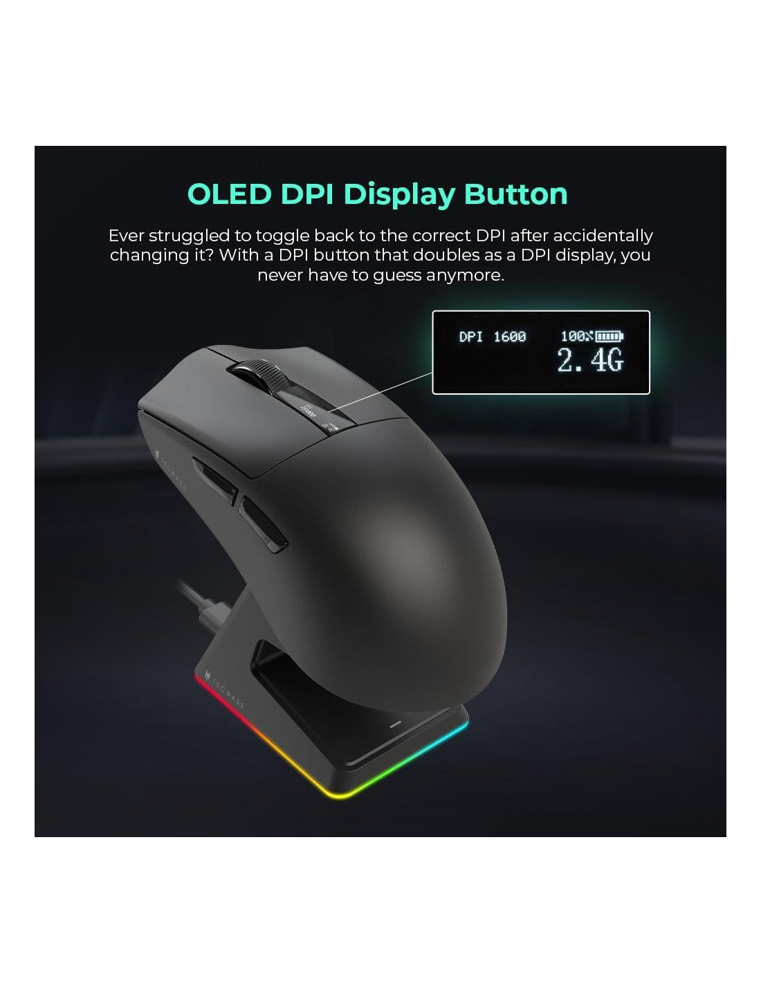 - Ratón Gaming TECWARE EX1, Ratón Inalámbrico de 26k, Pantalla OLED, Base de Carga RGB, Conectividad de Tres Modos, Ratón Gaming Ligero (Negro)