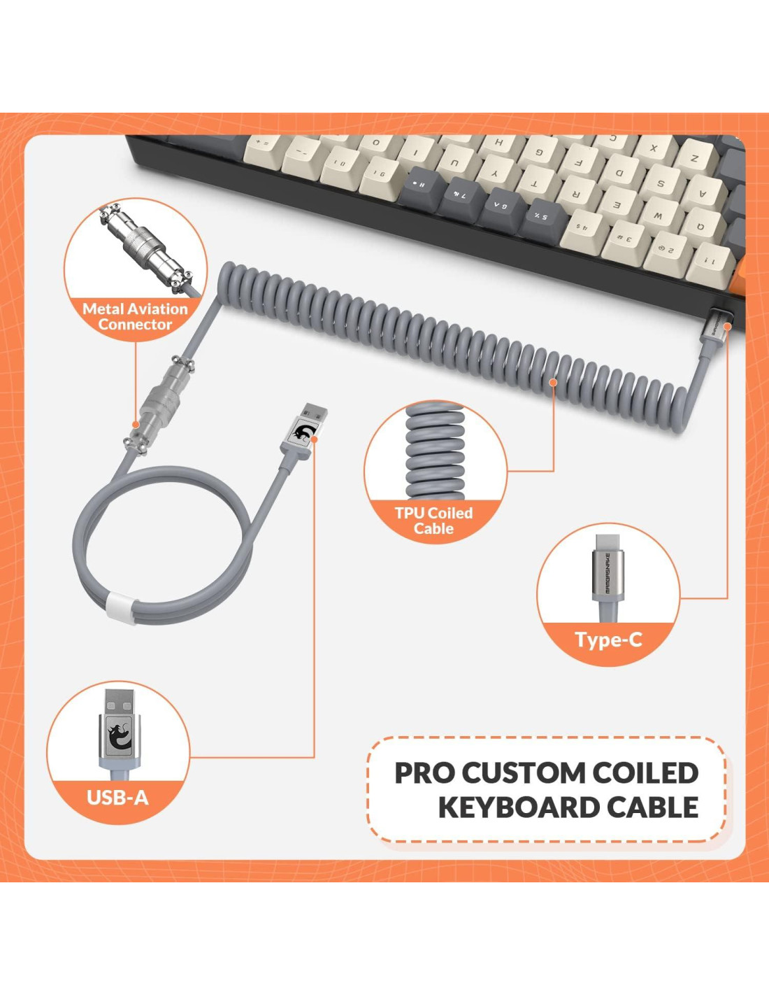 - [Cable Espiral Tipo C a USB A de Alta Calidad] Viene con un elegante y personalizable cable de teclado enrollado de doble funda, con conector de aviación de metal flexible, fácil de intercambiar, cable de resorte con buen rendimiento de rebote, asegura una rápida transmisión de datos, mantiene tu mesa ordenada y limpia con una longitud extensible larga, proporciona una actualización genial para el aspecto de tu teclado y configuración de escritorio, puede ser compatible con la mayoría de los teclados mecánicos de juegos USB C o impresoras, PS4, consola de juegos Switch.