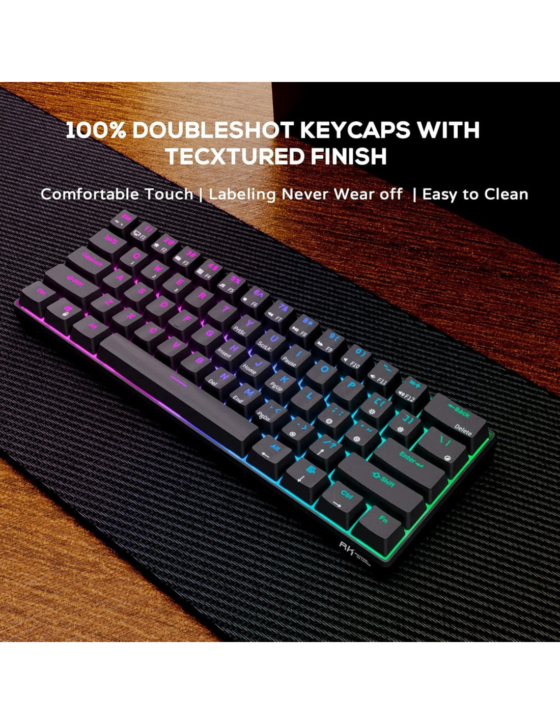 - Retroiluminación RGB Este Teclado Mecánico Personalizado 60% tiene 18 Modos de Retroiluminación RGB, 8 Modos de Retroiluminación Monocromática y 1 Retroiluminación de Color Completo. Estos modos de luz pueden proporcionarte un encantador ambiente de juego por la noche.